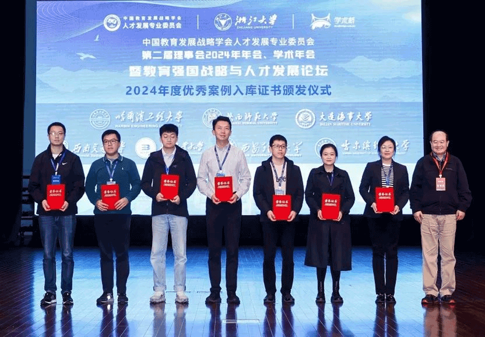近日,由中国教育发展战略人才发展专委会主办的教育强国战略与人才发展论坛在浙江大学举办。来自全国200多所高校的500多位人事人才工作相关部门负责人和专家学者齐聚一堂,共话人才发展大计,探讨人才评价改革与发展。前期,中国教育发展战略人才发展专委会面向各会员单位开展了2024年度新时代高校人才发展与评价创新案例征集活动,学术委员会从中评选了7份优秀案例入选中国教育发展战略学会人才发展专业委员会案例中心案例库。我校教师发展工作案例《“三级筑基、四类涵盖、五项赋能”一体化体系构建教师发展绿色生态》成功入选。在论坛主会场举行了入库优秀案例证书颁发仪式。