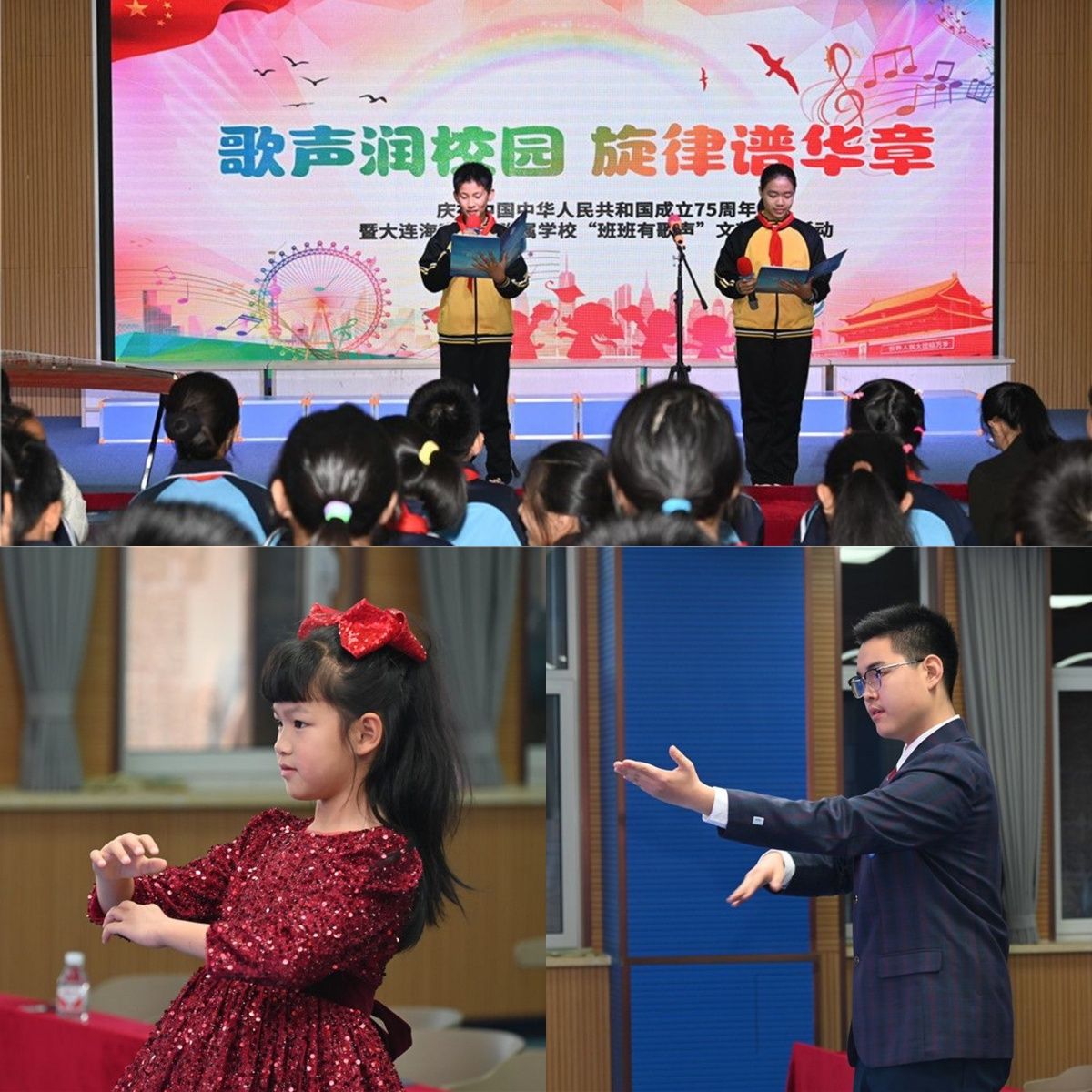 近日,附属学校隆重举行了1-9年级“班班有歌声”合唱比赛活动。本次合唱活动以庆祝中华人民共和国成立75周年为主题,旨在丰富校园生活,以美育人,展现我校学生健康向上的精神风貌。在展演中,同学们敞开心扉,纵情放歌,唱响经典,凯歌嘹亮,共同表达着对祖国的热爱和祝福。