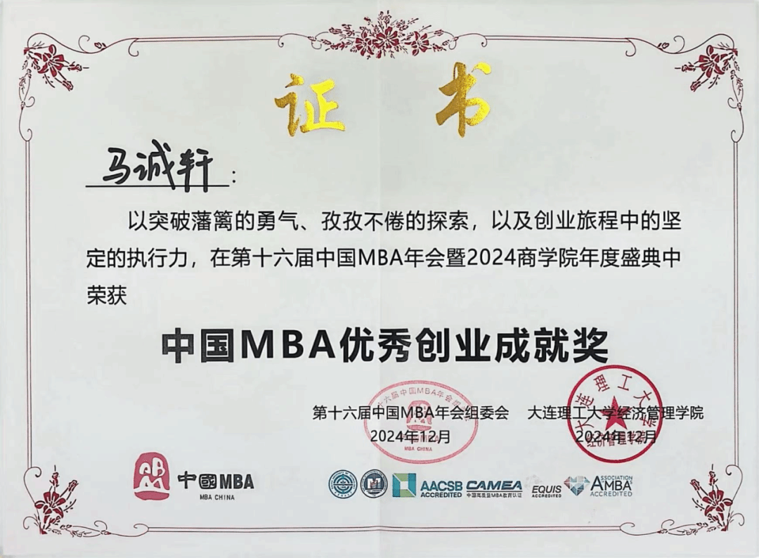 2022级MBA学员马诚轩获“中国MBA优秀创业成就奖”,在“一带一路”国家引领下,投身非洲创业,专注刚果金和赞比亚的清关及物流供应链代理业务,凭借敏锐的商业嗅觉,获得刚果金政府官方货物管理局亚太代理资质,累计完成件杂货40万方、集装箱12000TEU的出口业务。2023年,他在赞比亚投资进行实体化经营,服务客户涵盖多家知名企业,赢得客户广泛信任。