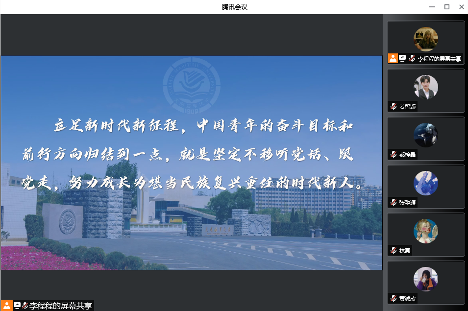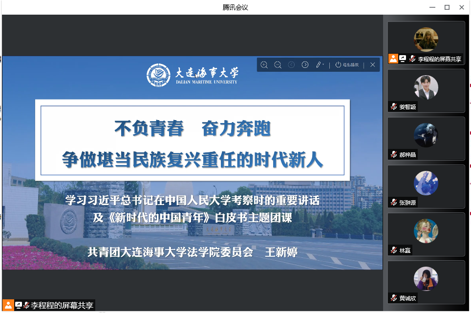 青年风华有为,国家大有可为。进入新发展阶段,承载着十四亿中国人民伟大梦想的中华巨轮继续劈波斩浪、扬帆远航。作为大连海事大学的学生,亦是海洋强国、法治中国建设的未来从业者,我们必须进一步关心海洋、经略法学,以实际行动投身社会主义现代化强国建设,为中国共青团成立100周年献礼,以实际行动迎接党的二十大胜利召开!