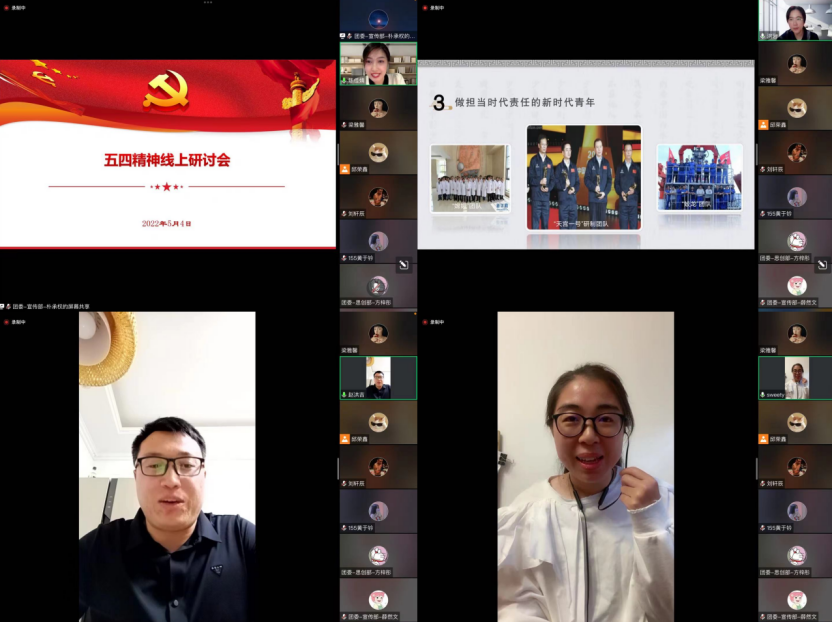 建团百年,风华正茂。为弘扬五四精神,信息科学技术学院于5月4日举行五四精神线上学习研讨会,活动邀请到了信息科学技术学院思想政治理论课教师2020-1中队兼职指导员洪岩老师进行理论宣讲。学院全体学生工作干部、各中队团干部代表、团委全体成员、研究生第一党支部与本科生第七党支部党员代表参加会议。会议由指导员、本科生第七党支部书记陈佳婧主持。