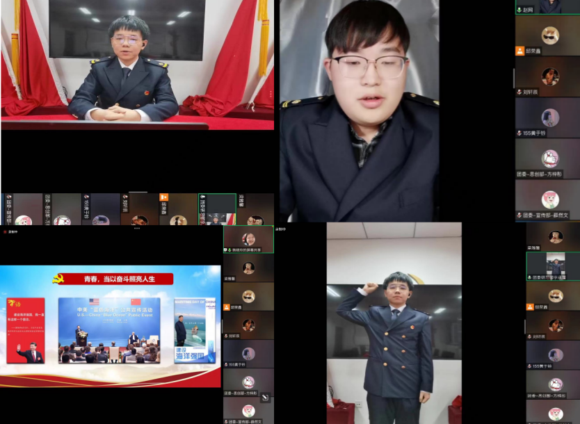 思想政治理论课教师兼职指导员洪岩老师通过一个个生动的案例向同学们阐释了如何做一个合格的新时代青年,鼓励同学们将理想信念与时代精神联系在一起,砥砺奋进、自强不息,不负党和人民的殷切期望。院团委书记赵洪吉在讲话中表示,广大团员同学应充分发挥好疫情之下的先锋模范和榜样引领作用,带动身边同学共同为中华民族伟大复兴而努力奋斗。指导员阎晓如同学们分享了五四精神中“实践”一词的重要性,表示青年不仅要有鸿鹄之志,还要付诸行动。