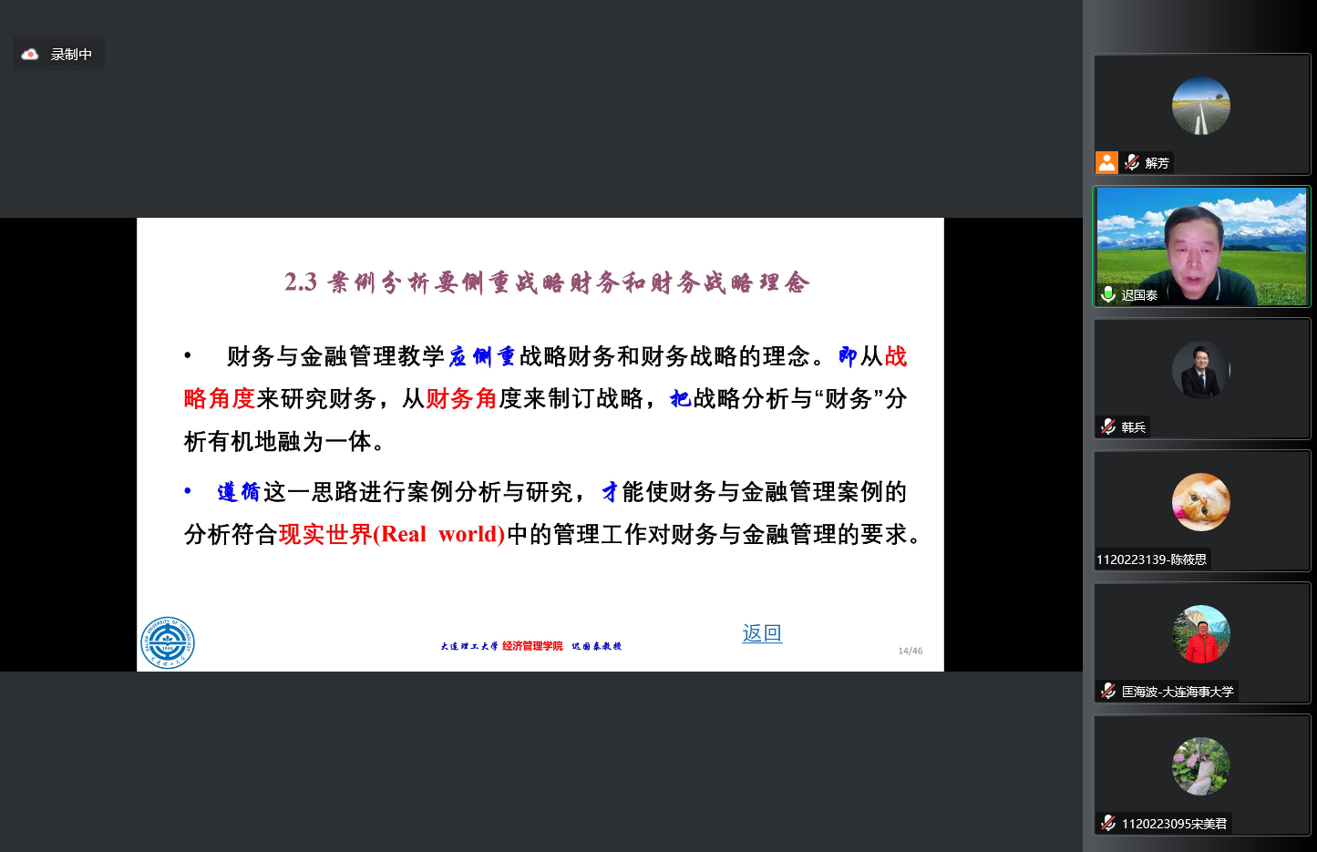 11月1日,由大连海事大学MBA教育中心主办的鲲鹏大讲堂-MBA系列讲座第十期线上开讲。本期邀请到大连理工大学迟国泰教授为MBA及MEM学员们带来了题为《财务与金融案例分析的一般原理与方法》的线上讲座。