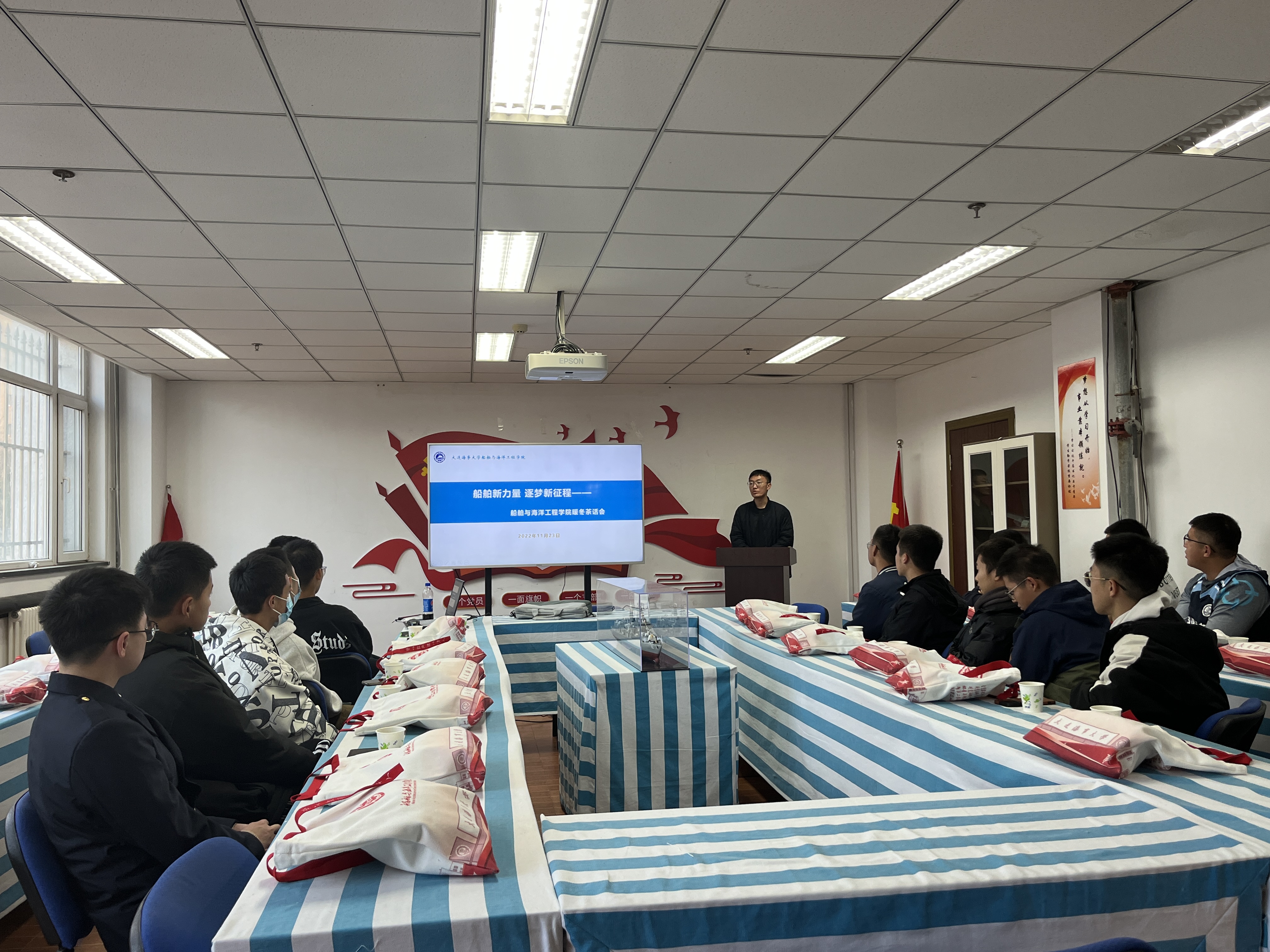 11月23日,船舶与海洋工程学院在英华三公寓党员活动室举办“船舶新力量 逐梦新征程”家庭经济困难新生暖冬茶话会。学院指导员薛航、兼职指导员曲宸阳、孙可馨以及学院全体家庭经济困难新生参加此次活动。