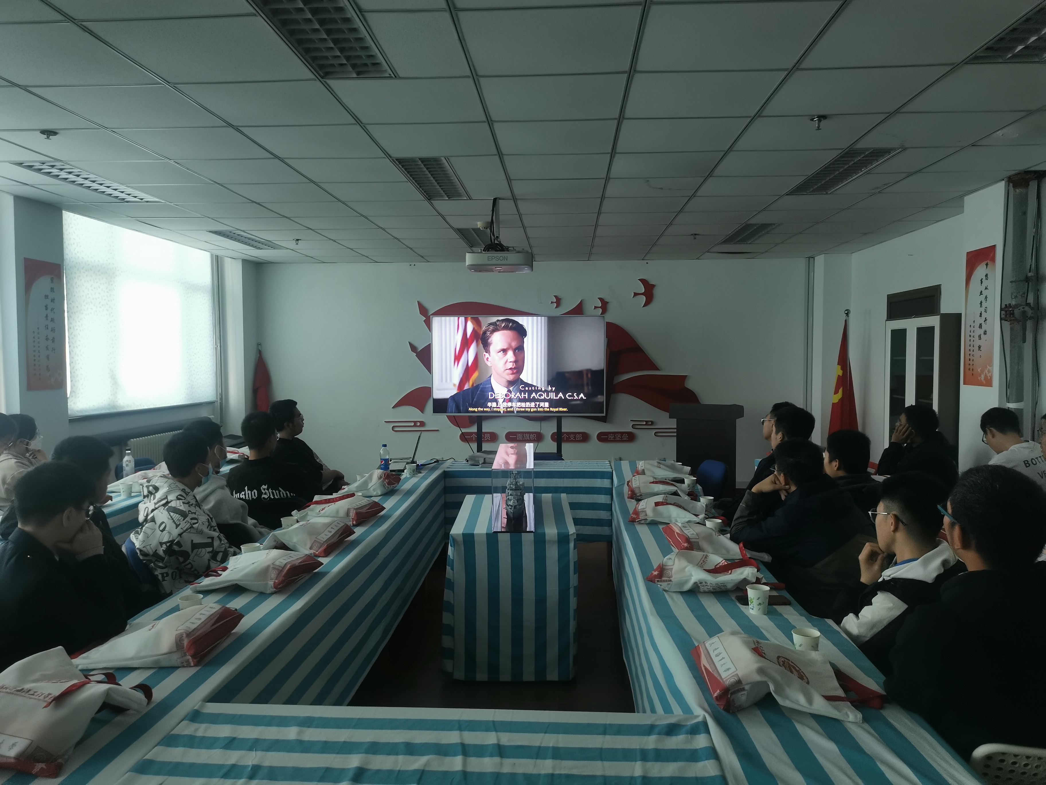 茶话会上,学院为在场同学播放电影《当幸福来敲门》,透过影片中主人公通过不懈奋斗,以智慧、汗水拼搏出一条成功之路的经历,勉励同学勤奋学习,争做有理想、有本领、有担当的新时代青年。