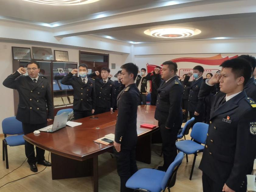 活动最后,全体党员面向党旗高举右拳,跟随轮机第一本科生党支部书记张博的领誓,重温入党誓词,用铮铮誓言表达为党、为人民不懈奋斗的决心。
