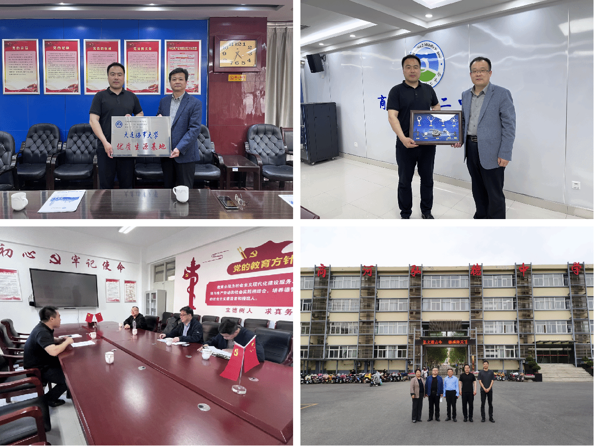 4月16日至17日,招生宣传组先后前往商河一中、商河三中、商河二中、弘德中学开展招生宣传,与高中校领导、相关任课教师进行座谈,介绍学校的历史沿革、办学特色、学科专业、师资平台、人才培养以及近年来在山东省的招生计划、录取分数及录取位次等,特别介绍了航海类专业的具体情况和提前批录取的相关政策,让各个学校对我校的航运特色、办学理念和人才培养模式有了更加深入系统地了解。期间,与商河一中签订“优质生源基地共建协议”并举行授牌仪式。各所高中对大连海事大学的办学理念、行业特色和就业前景表示认可和赞扬,希望以此次活动为契机,进一步认识海大,了解海大,将来能够输送更多优秀学子赴海大学习,共同助力学生成长成才。