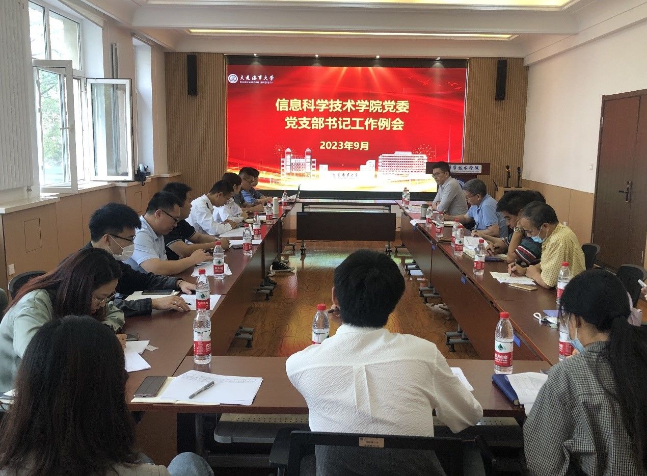 9月27日,信息科学技术学院党委于电航楼召开新学期党支部书记工作例会。学院党委书记李生君、院党委副书记张肃、党办主任王雅辉及各党支部书记参加会议。会议由王雅辉主持。