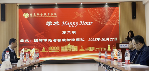 2023年10月27日,大连海事大学信息科学技术学院第二期“学术Happy Hour活动”在电航楼218会议室成功举办。本次活动由王俊生教授带领的“海洋传感与智能检测创新团队”承办,由宋明珠副教授主持,并邀请信息科学技术学院院长付先平、党委书记李生君、副院长符策、院党委副书记张肃以及学院教职员工出席。