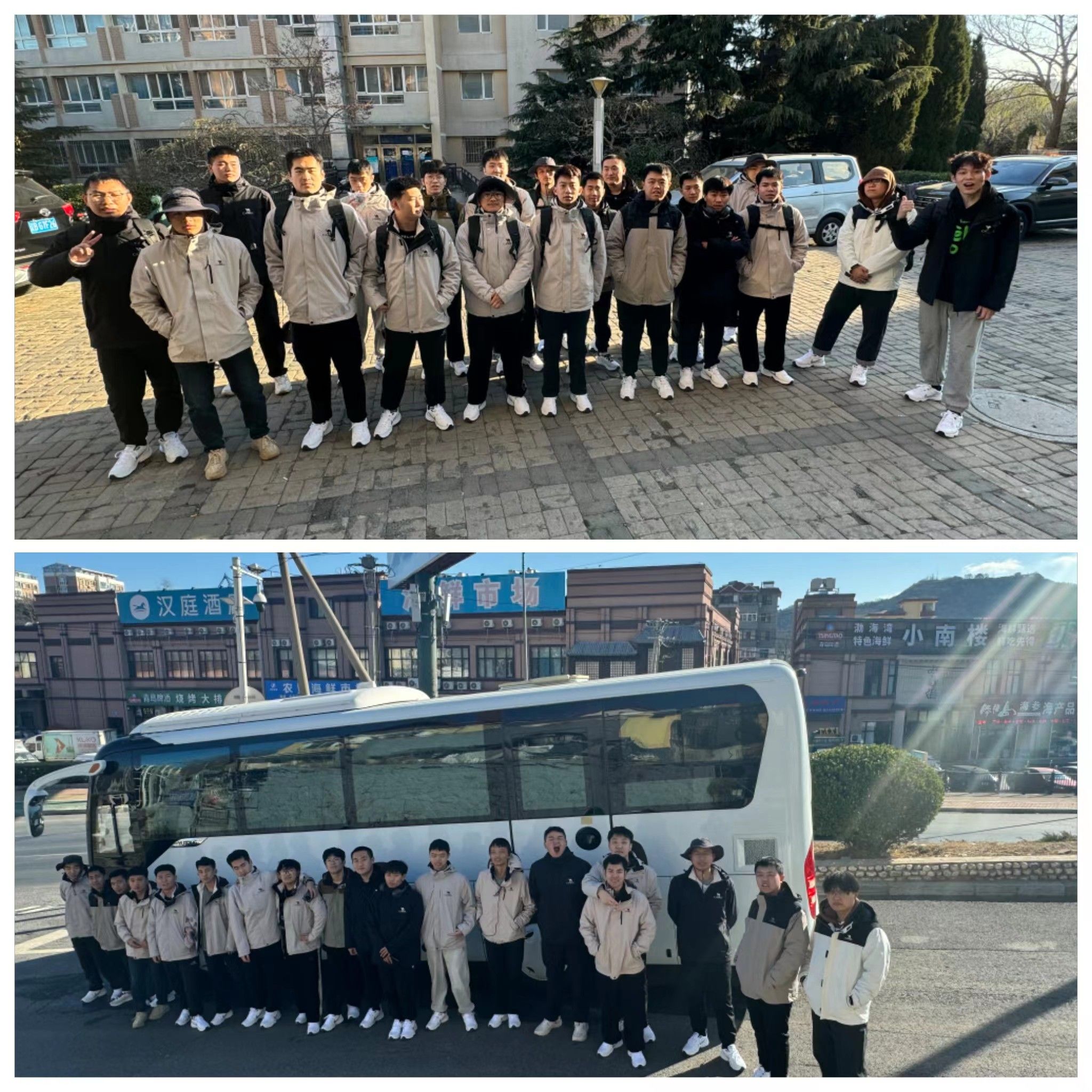 2023年12月1日早上,招商精英班同学着装企业购买的冲锋衣、登山包、登山帽和登山鞋在公寓楼下集合,寒风虽凛冽,斗志更昂扬。每一名同学胸怀饱满的热情参与本次活动,由大巴车统一接送至白玉山山脚下。