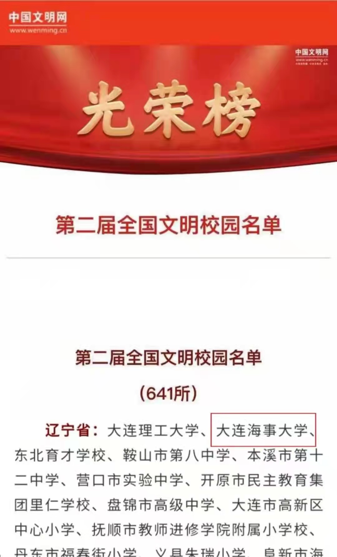 全国文明校园是学校精神文明建设领域的最高荣誉,这是我校继2015年荣获全国文明单位,2017年顺利通过复核;2018年荣获辽宁省文明校园;2019荣获辽宁最美校园后,在精神文明创建领域取得的又一殊荣。至此,我校已经完成精神文明创建领域最高荣誉“大满贯”。