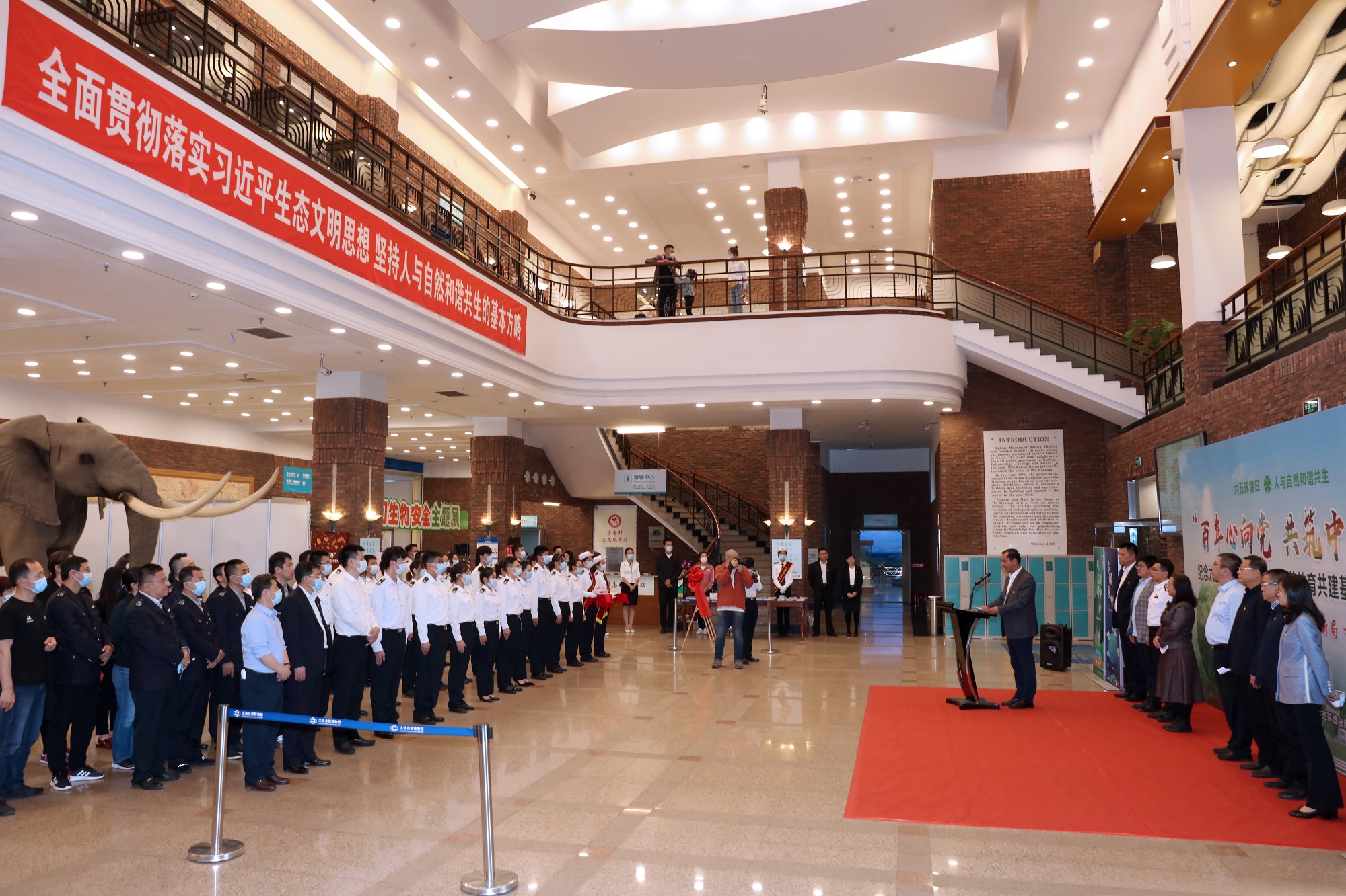 杨颖在讲话中表示,大连自然博物馆成为地方政府和高校进行生态环境保护的教育基地,既是一份荣誉,也是一份沉甸甸的责任,更是一种信任与期待。希望今后能够携手并进,致力于推动生态环保科普宣传、提升公众环保意识,为青年学生搭建志愿服务和社会实践的重要平台。