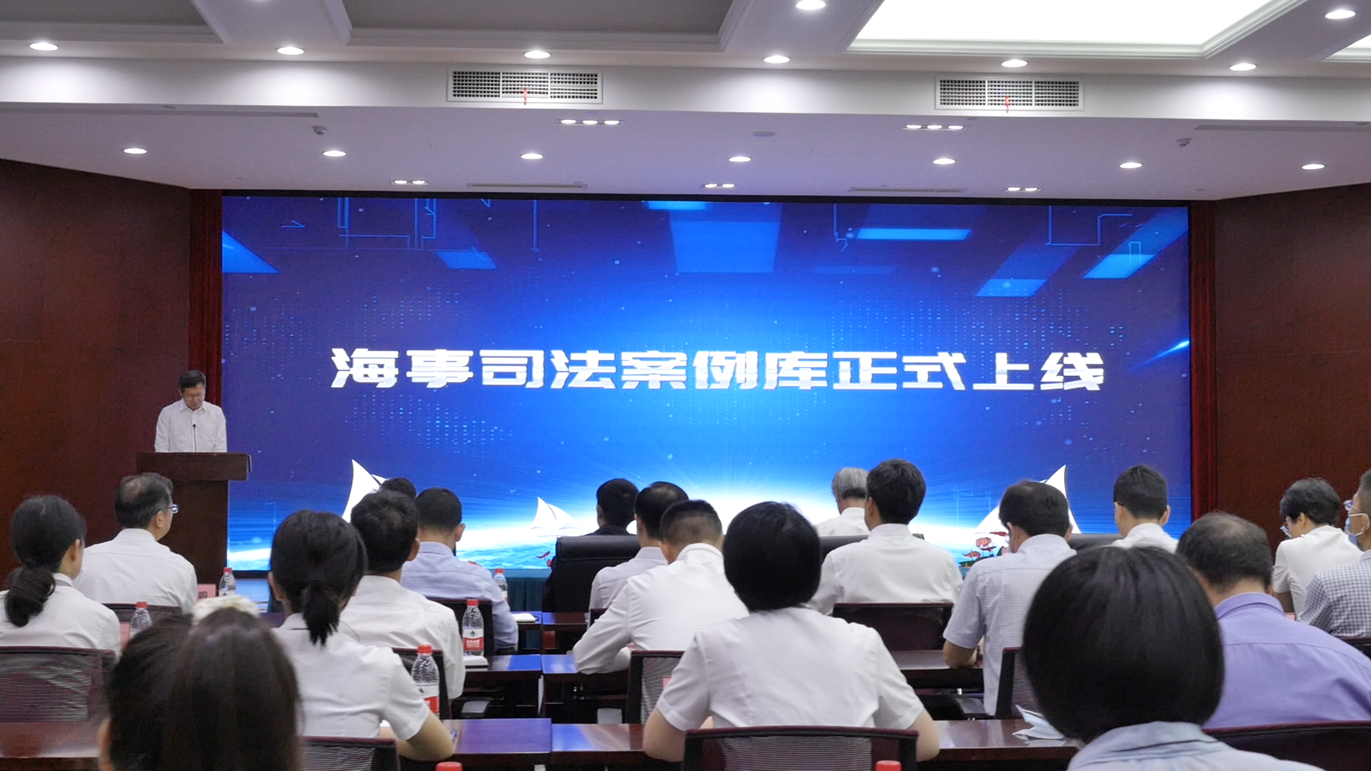 上线仪式后举行了新闻发布会,向社会发布了海事司法案例库总体建设背景和基本情况。我校法学院院长初北平介绍了案例库的优势、意义及海大参与案例库建设的情况。新闻发布会情况首次通过案例库进行全程现场直播。