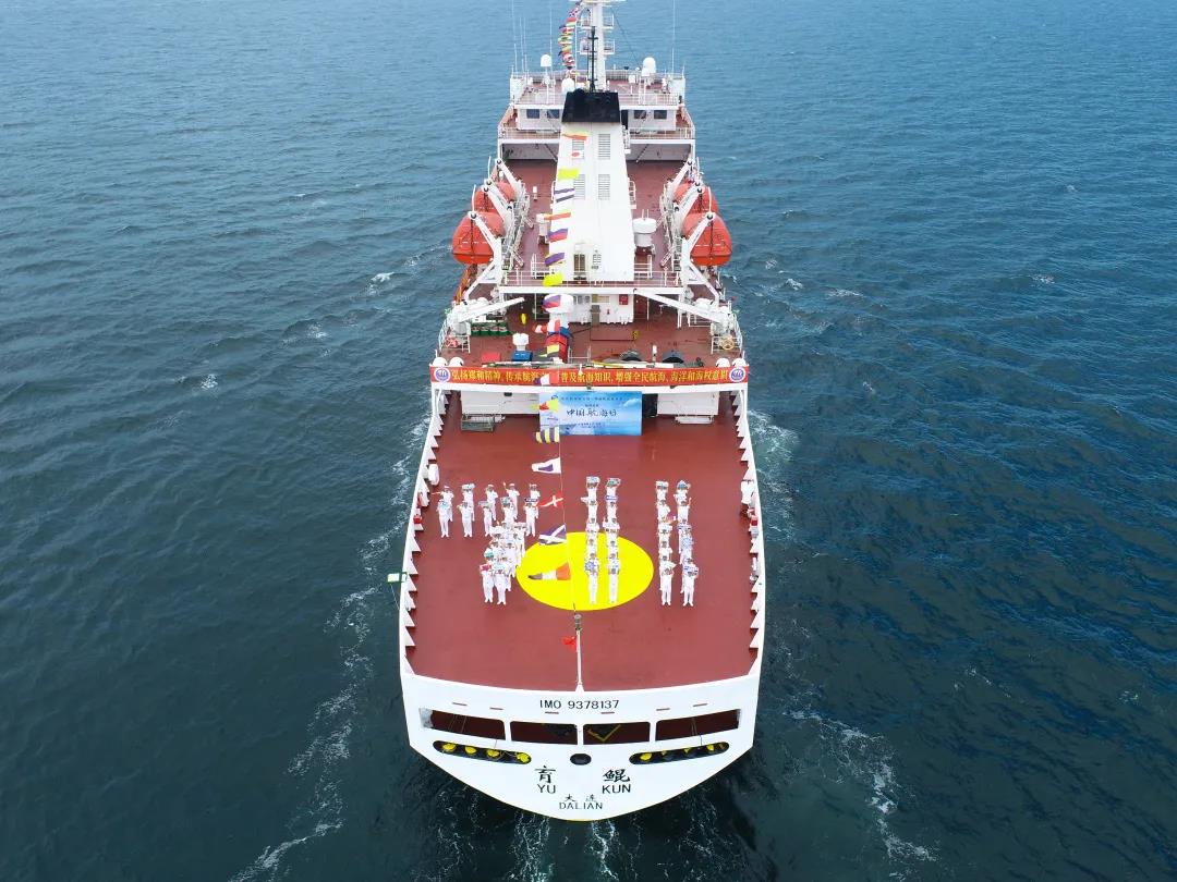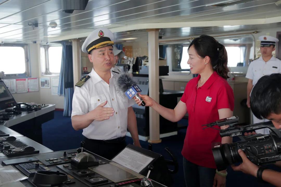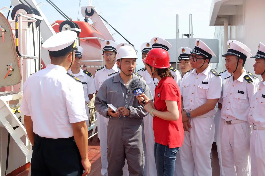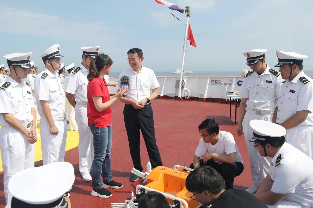 科普活动从“育鲲”轮操作甲板开场,政委曲程飞介绍了中国航海日以及“育鲲”轮的相关背景。
