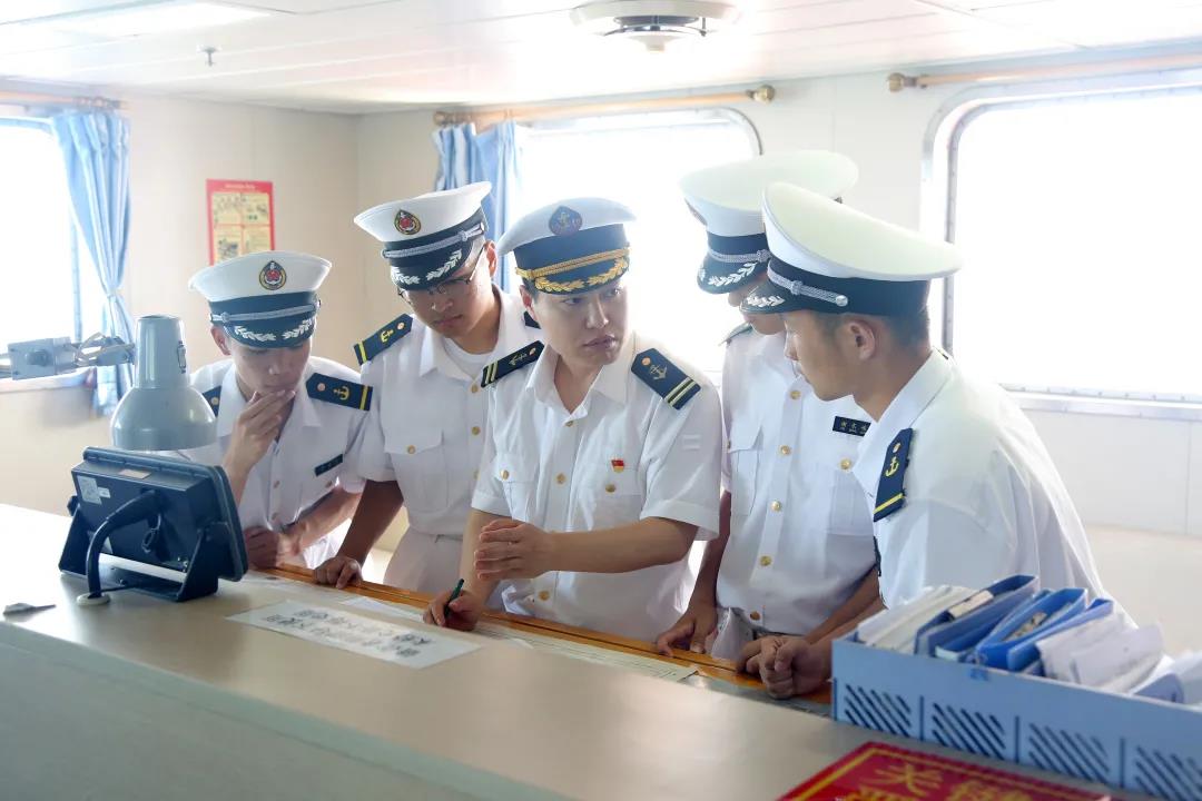 船长范中洲带领大家参观了“育鲲”轮驾驶台,并详细介绍了航海时钟、前进档、螺旋桨、电罗经、磁罗经、雷达等操作台核心设备。