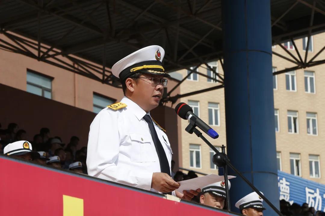 许民强代表全校师生向多年来给予学校新生军训工作大力支持的承训部队的各级领导和全体承训教官表示感谢,对圆满完成各项军训任务的全体2021级新同学表示祝贺,并鼓励同学们在海大这片热土,传承半军事管理文化和海大人的蓝色基因,学有所得、学有所用,与时代同频共振,与祖国同向同行。