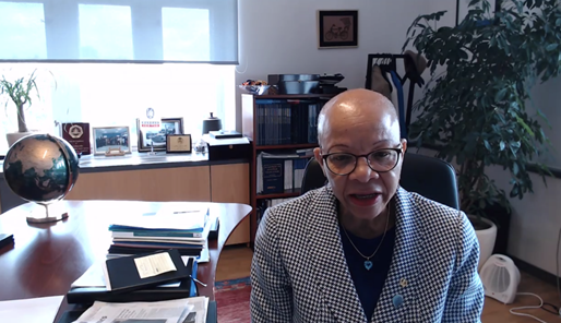 国际海事组织秘书长办公室主任Azara Prempeh分享了国际海事组织在推进海事妇女发展方面取得的进展,以及自己作为性别平等政策的受益者在海事领域工作的亲身经历。她指出,国际海事组织过去三十多年间一直致力于推动性别平等和女性能力建设,努力打破障碍,创造一个支持、包容和多元化的工作参与环境。同时,她还肯定了大连海事大学在国际海事教育培训领域的影响力,认为大连海事大学作为知名海事类院校,凭借突出的办学规模、教学质量和国际化视野,今后必将能大力推动国际海事女性的教育和发展。
