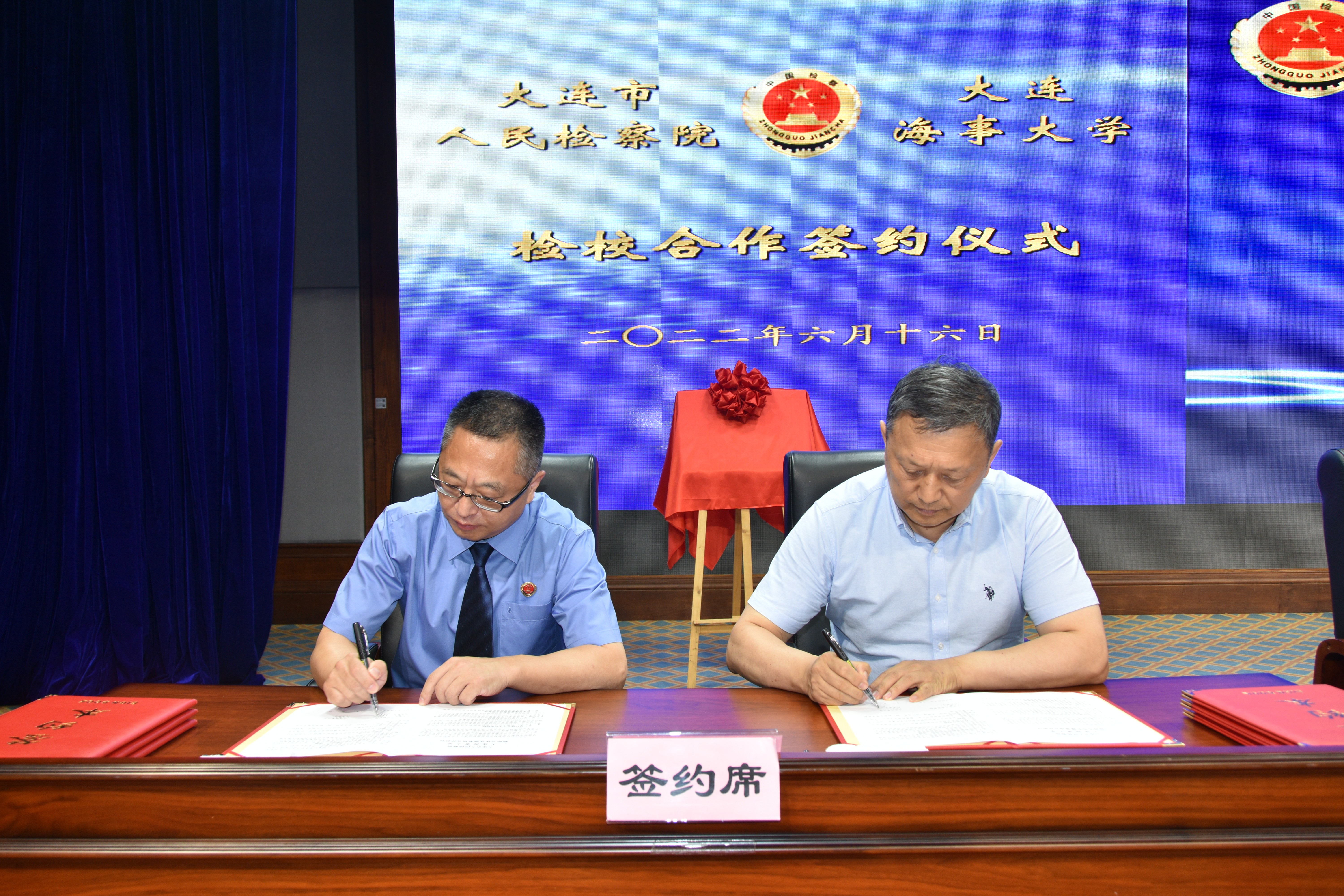 在合作签约仪式上,大连市人民检察院与4所高校分别签署合作协议,并为“检校合作共建基地”揭牌。其间,孙玉清校长代表大连海事大学与市检察院周焱检察长共同签署了《检校合作共建基地合作协议》。