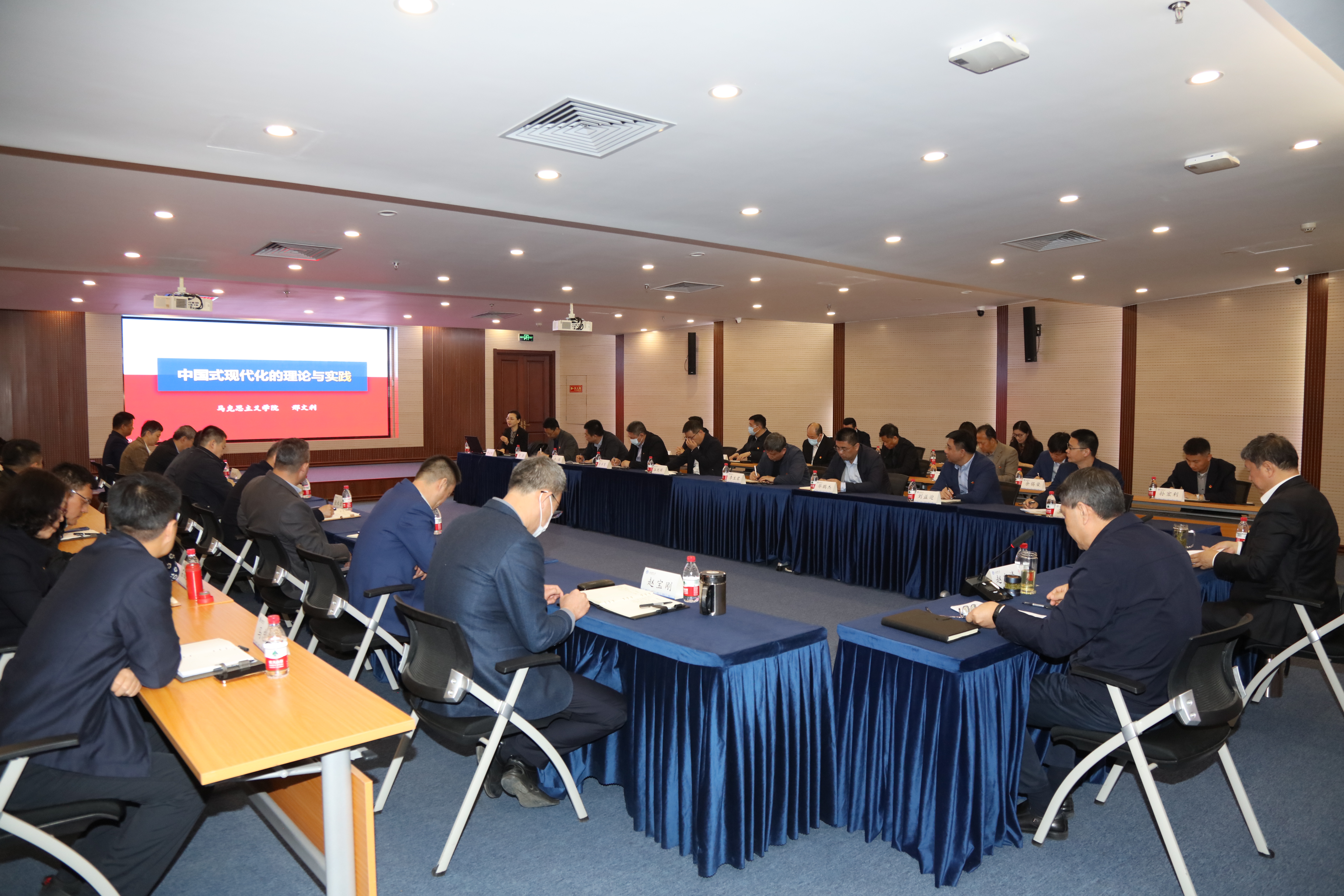 按照读书班和中心组专题学习计划,会议聚焦“中国式现代化”开展第一次集体学习。邢文利作“中国式现代化的理论与实践”专题辅导,分别从实践论、认识论、方法论三个角度,对中国式现代化的历史进程、理论体系、实践要求进行了深入阐述,为参会人员带来了一场有深度的理论辅导和一堂生动的思想政治理论课。