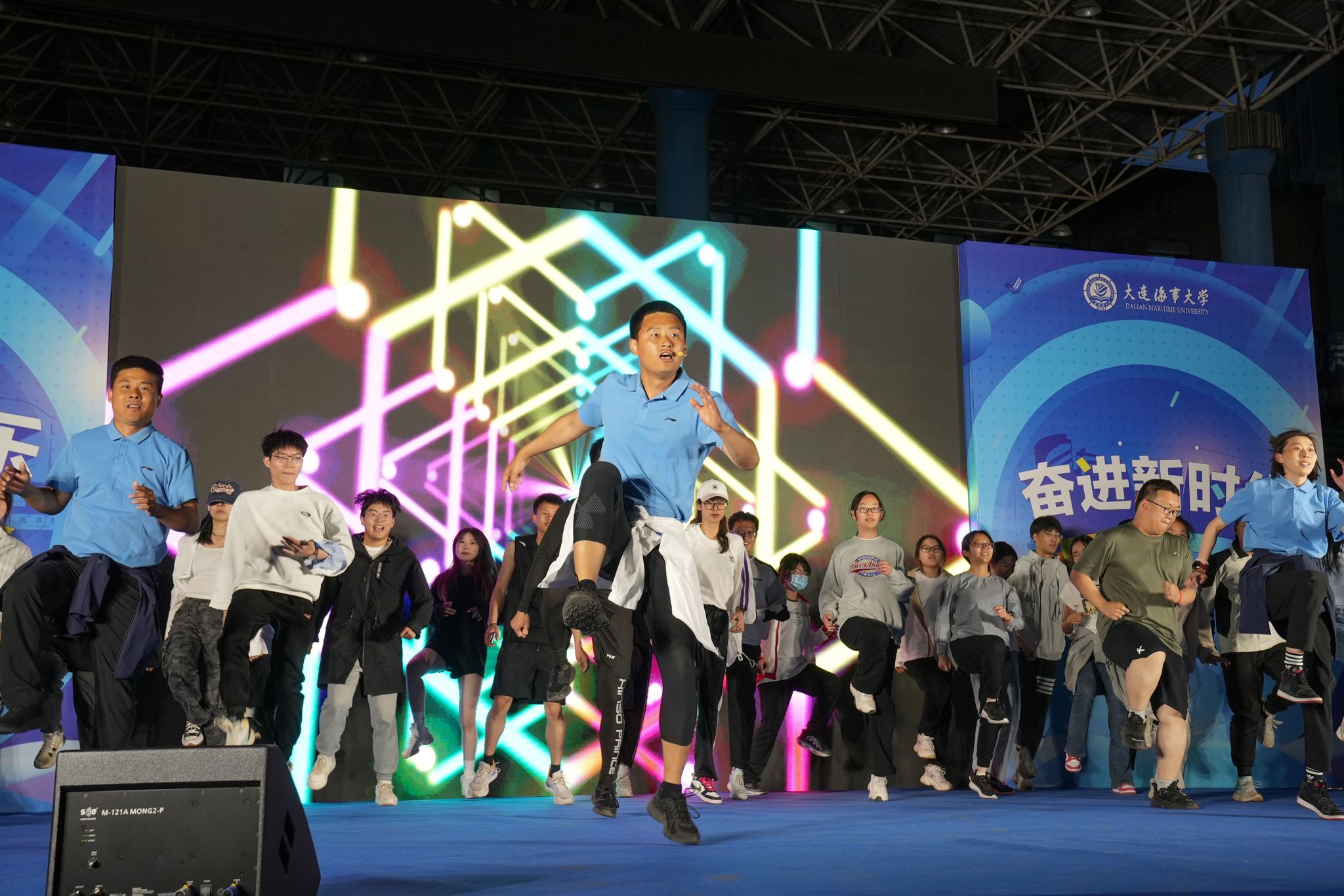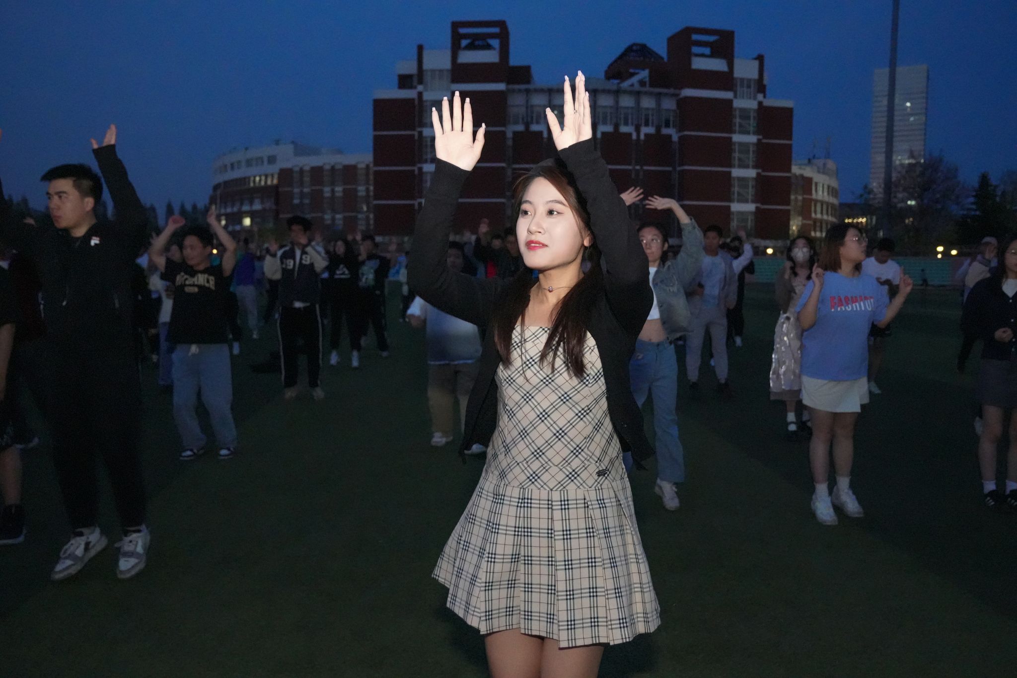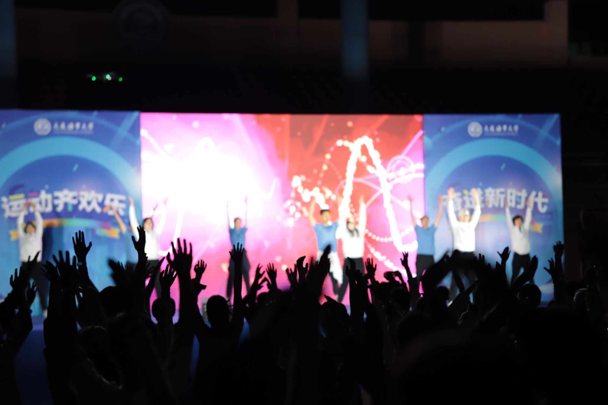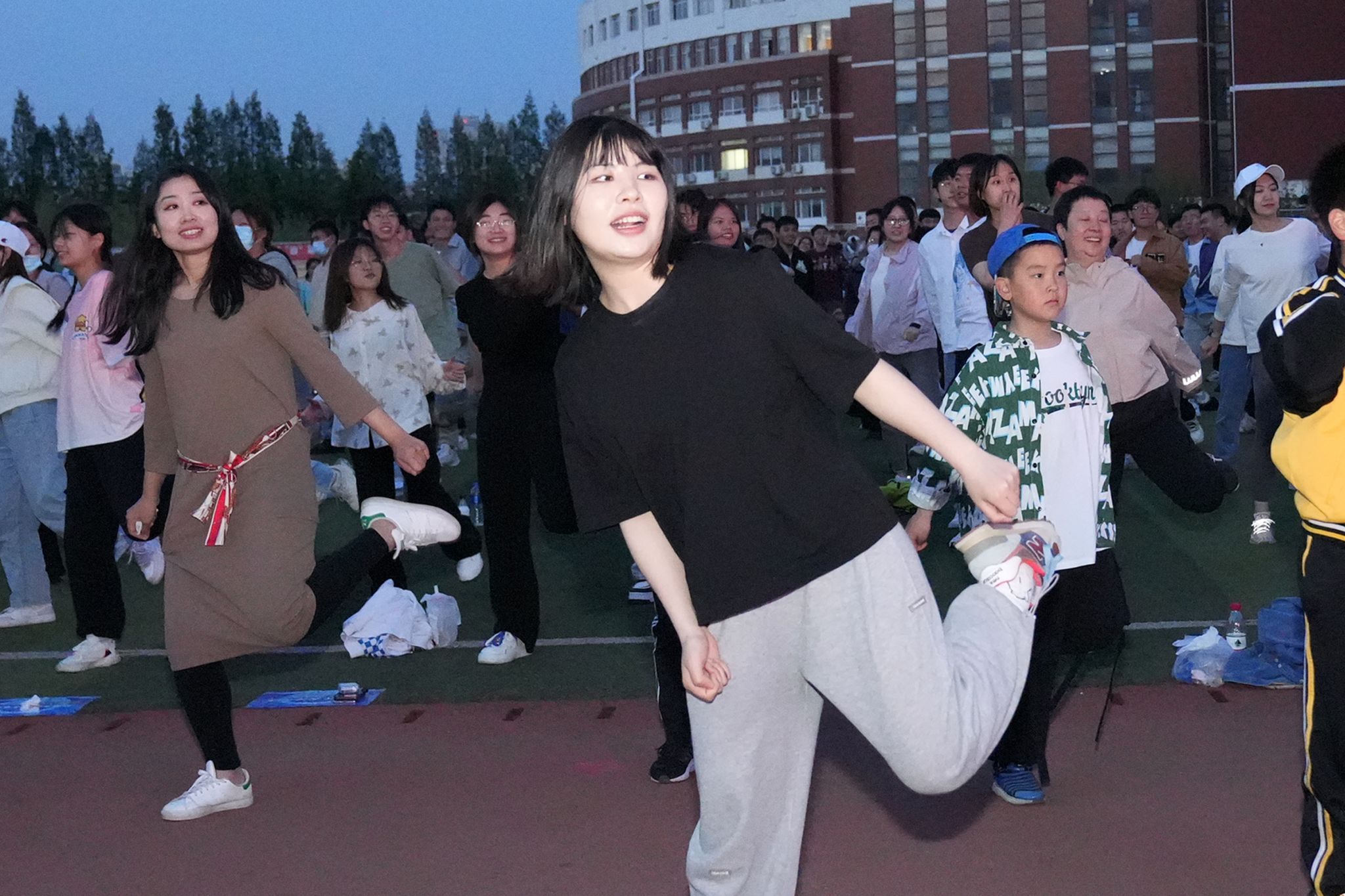 晚上,本次趣味运动会的特色环节“来、一起嗨起来”体育健身主题活动拉开帷幕。体育老师带领在场师生一起跳集体操,伴着青春欢快的音乐,师生一起“起舞”,激情与活力在操场上肆意绽放。
