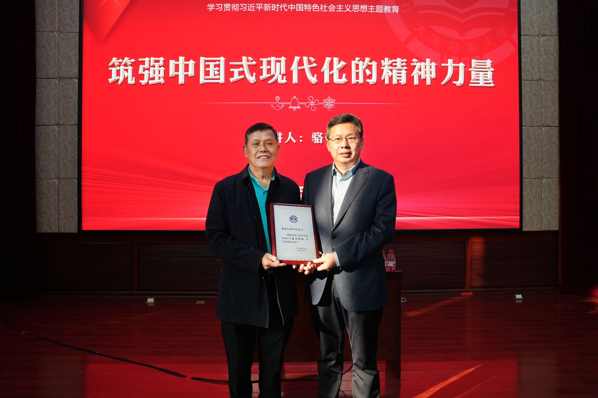 报告结束后,许民强代表学校向骆郁廷教授赠送了“海大讲坛”纪念牌。