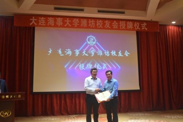 许民强为潍坊校友会授牌并为第一届理事会成员颁发聘书。