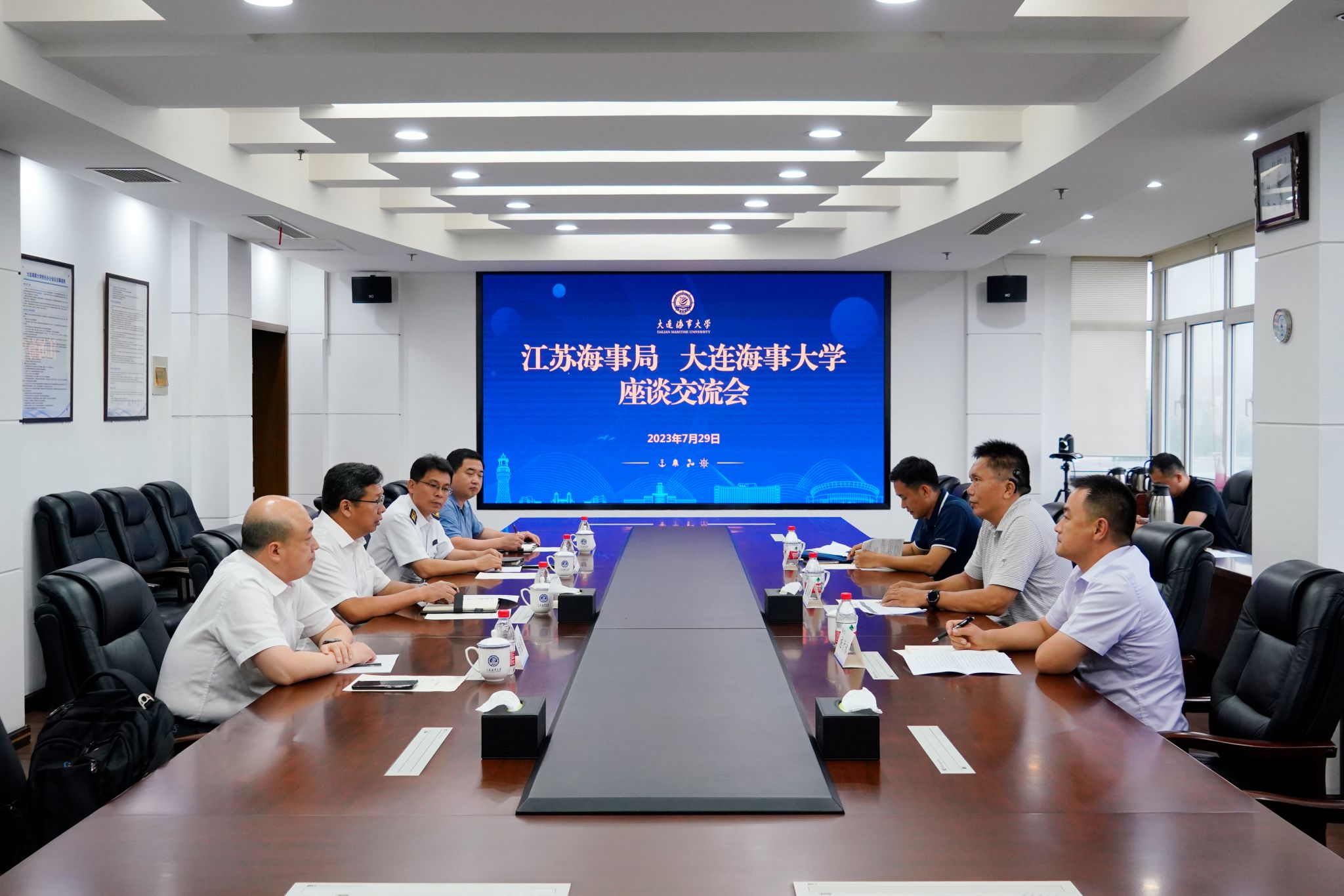 翟久刚感谢学校长期以来在海事人才输送、干部队伍教育培训等方面的支持。他介绍了江苏海事局近年来人员招录的有关情况并表示,大连海事大学是江苏海事局重要的“生源地”,近年来大连海事大学毕业生到江苏海事局工作的人数始终保持在全国各大航海类院校首位。期待双方继续强化紧密联系,加强务实合作。