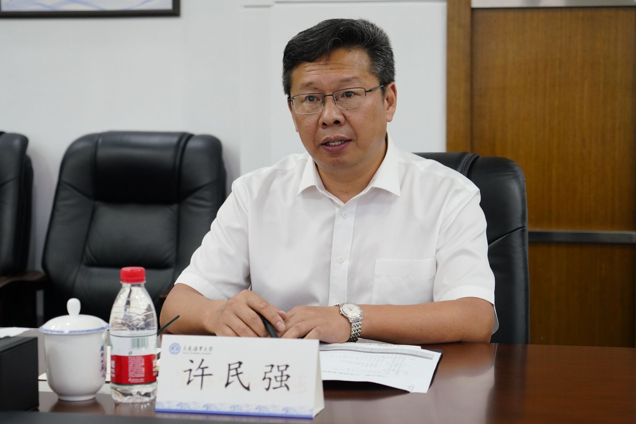 7月29日下午,江苏海事局一级巡视员翟久刚,人事教育处副处长施行永、四级调研员陈漪翊一行来校调研,党委书记许民强在综合楼822会议室会见翟久刚一行并座谈交流。