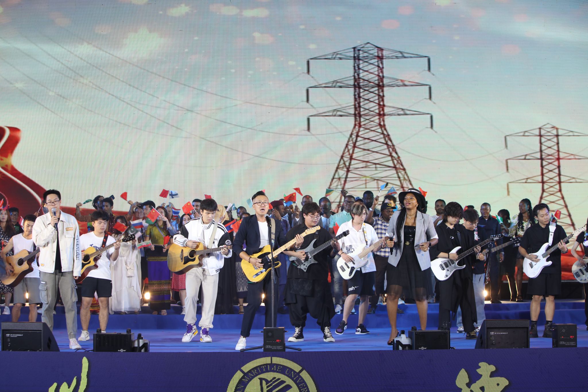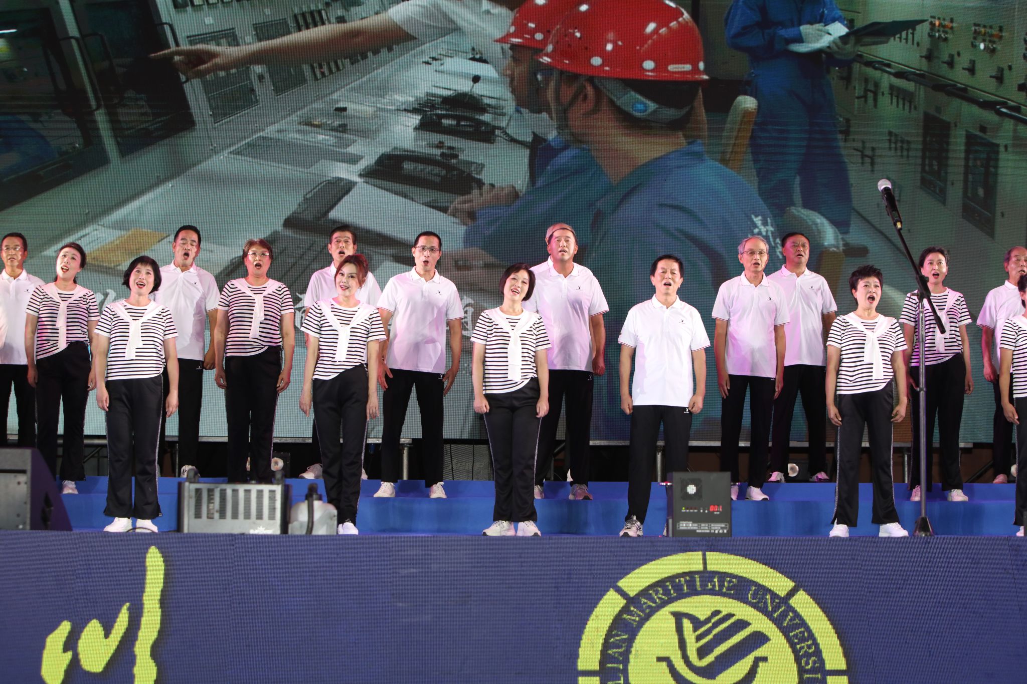 最后,校领导、全体演职人员以及台下同学们一起合唱《大连海事大学校歌》,唱响了海大人心中的旋律。晚会在全体师生嘹亮的校歌声中圆满闭幕。