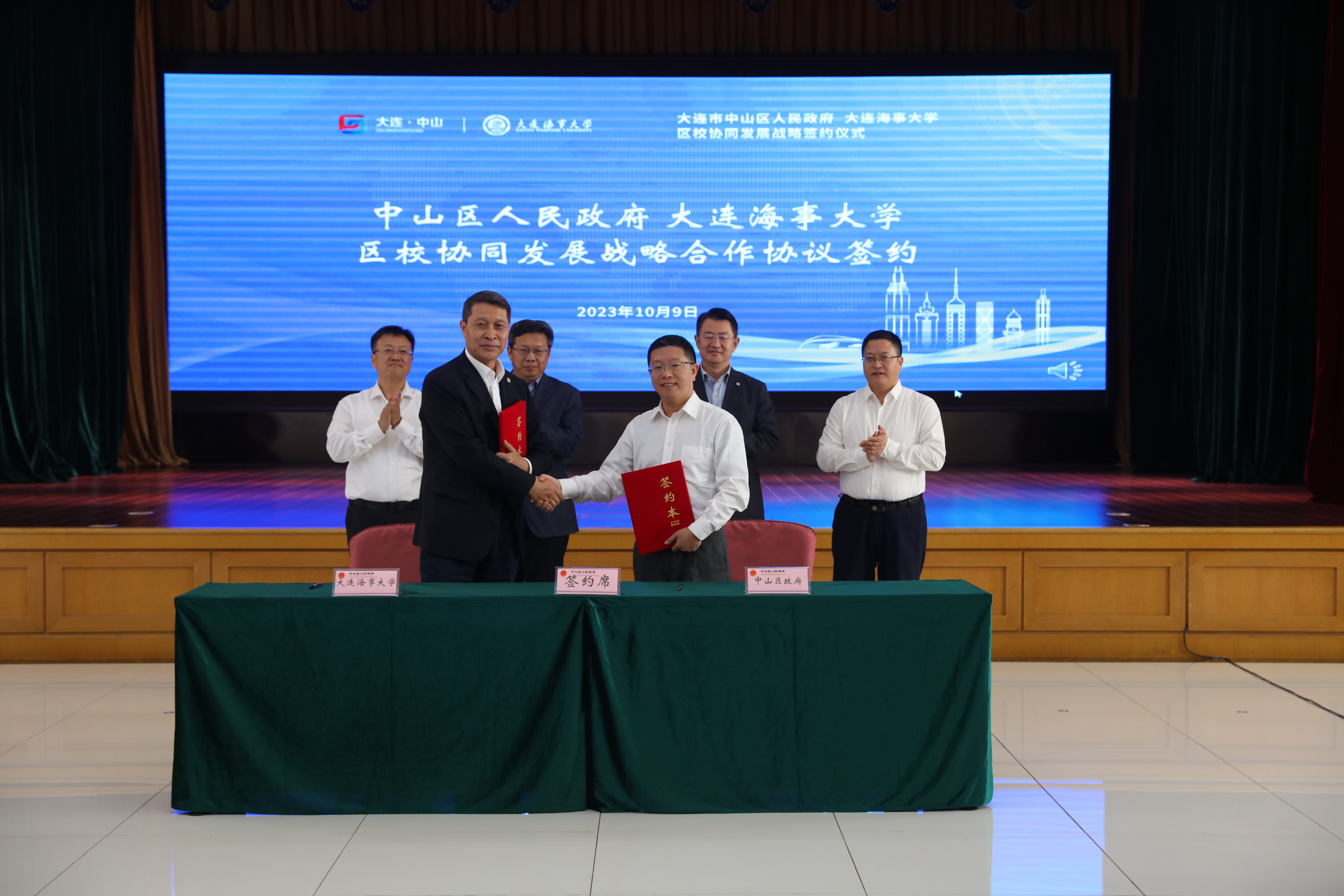 10月9日下午,我校与大连市中山区人民政府签署区校协同发展战略合作协议。中山区委书记张洪喜,中山区委常委、副区长王厚海,中山区委常委、宣传部长王彦静,中山区人民政府副区长刘剑,我校党委书记许民强,校长单红军,副校长赵友涛出席签约仪式。中山区发改、教育、科工信局等部门以及各街道办事处有关负责同志,学校相关部门负责同志参加签约仪式。仪式由王彦静主持。