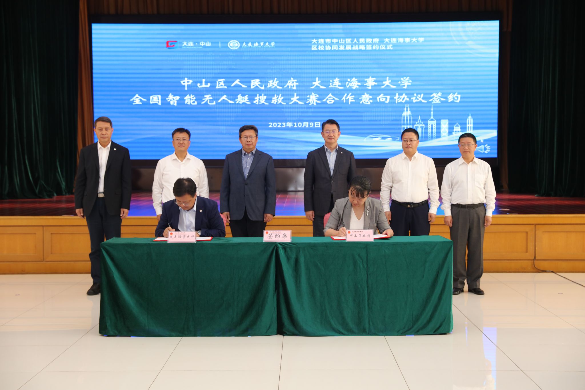 大连市中山区科工信局局长徐宇春、大连海事大学科技处处长弓永军分别代表双方签署《第三届全国智能无人艇搜救大赛暨智能无人艇技术论坛合作意向书》。