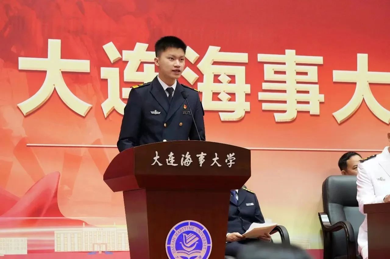 船舶电气工程学院学生王祉皓作为学生代表发言。他分享了半军事管理对其世界观、人生观和价值观的养成,表达了对学校培养的感恩、对半军事管理的热爱以及对学弟学妹的祝福。