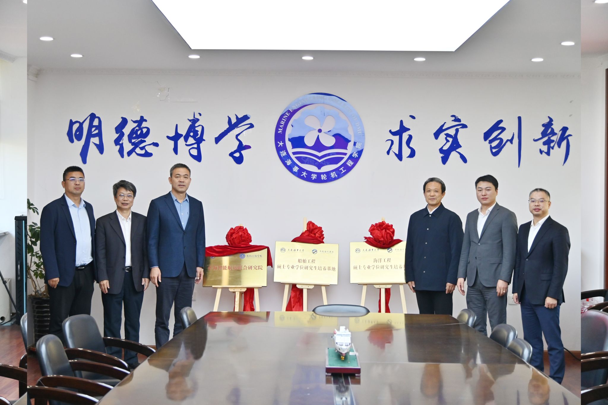 双方代表为卓航智能航运联合研究院、硕士专业学位研究生培养基地揭牌。
