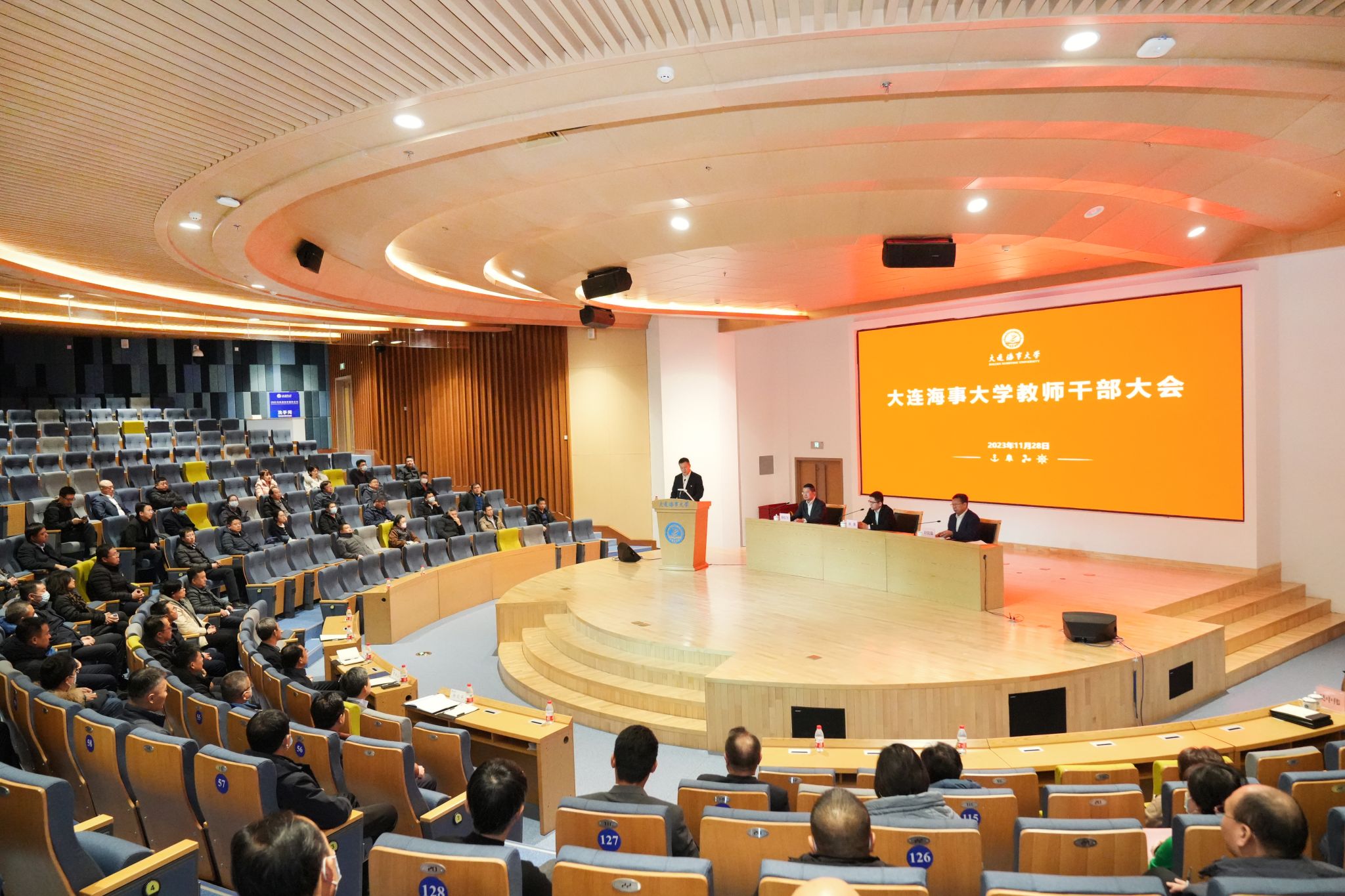 2023年11月28日,学校召开教师干部大会。交通运输部人事教育司领导干部管理处处长刘强出席会议,学校领导班子成员、二级教授、机关中层干部、二级单位党政正职参加会议。