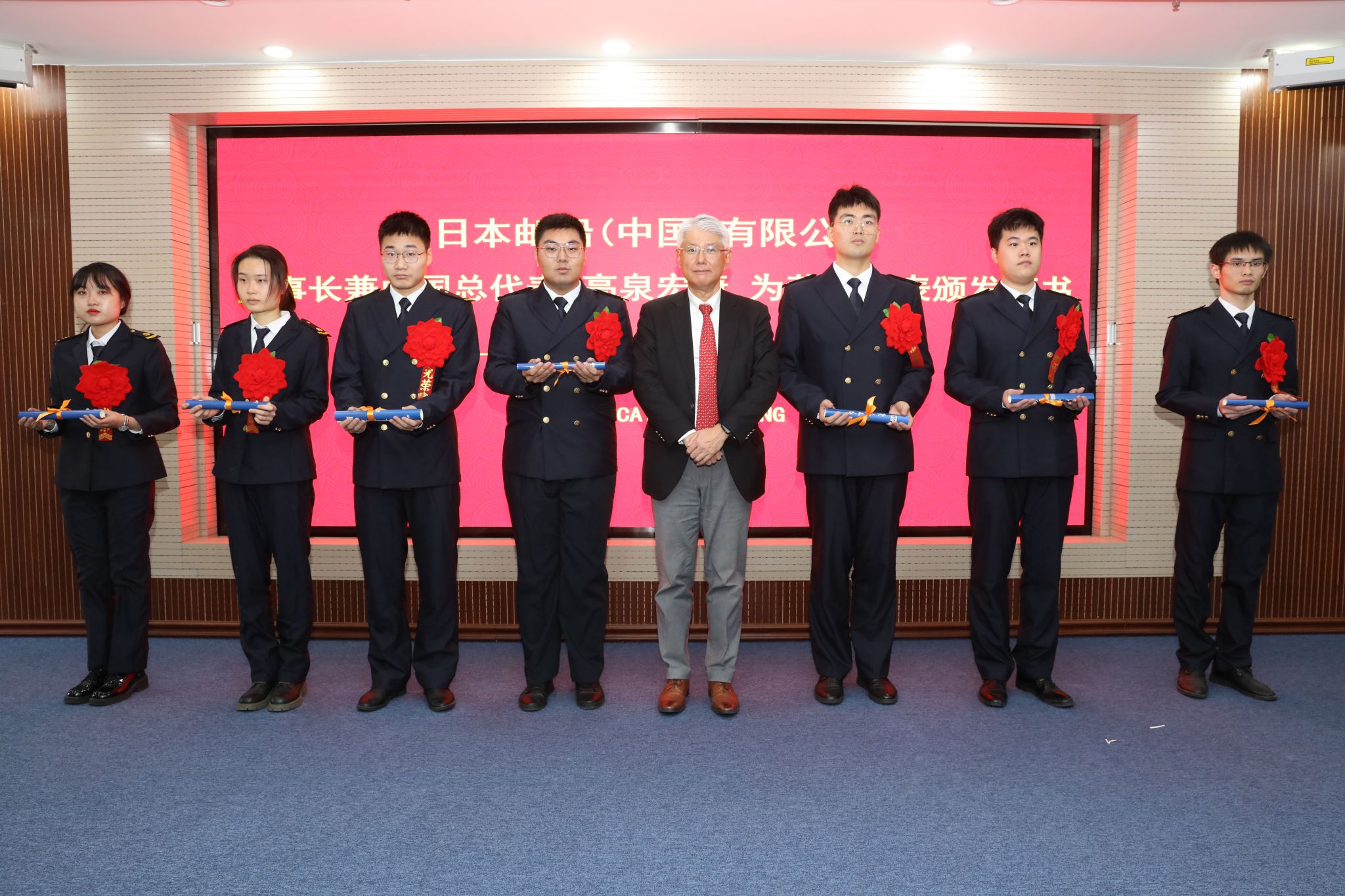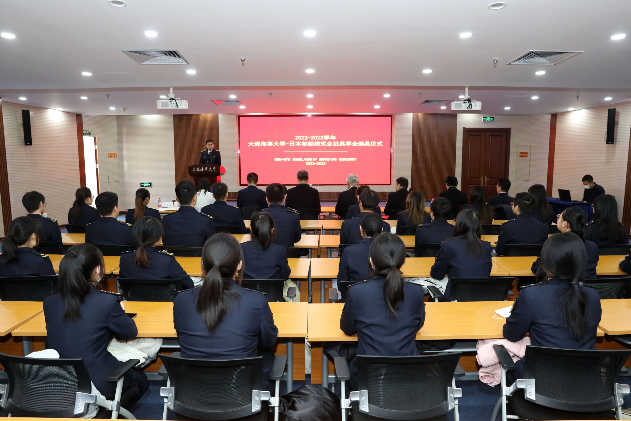 11月28日上午,大连海事大学在凌水国际会议厅举办2022-2023学年日本邮船株式会社(NYK)奖学金颁奖仪式。日本邮船(中国)有限公司董事长兼中国总代表高泉宏康一行4人来校参加活动,副校长赵宝刚出席仪式。仪式由党委学生工作部部长王义波主持。