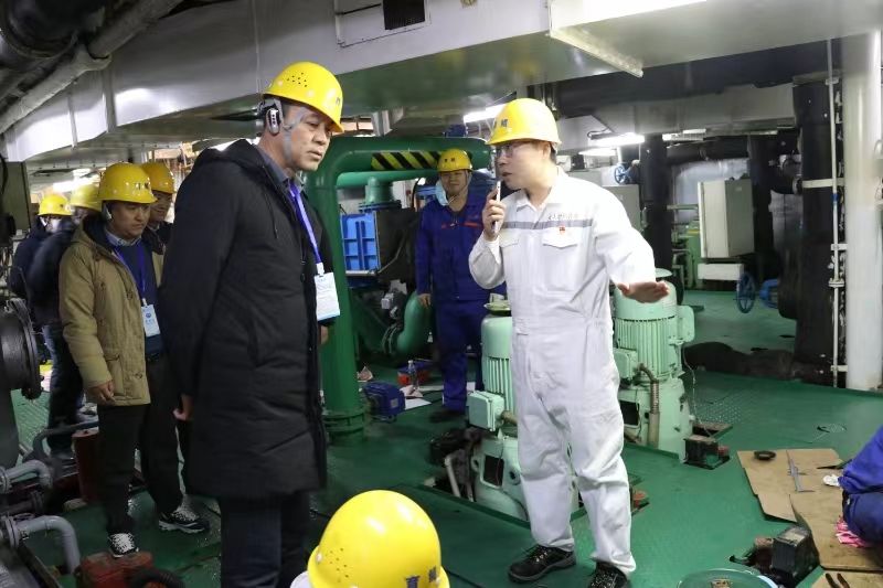 1月31日,副校长赵宝刚走访“育鲲”轮,慰问全体老师和船员,并现场检查指导节假日期间安全生产工作。