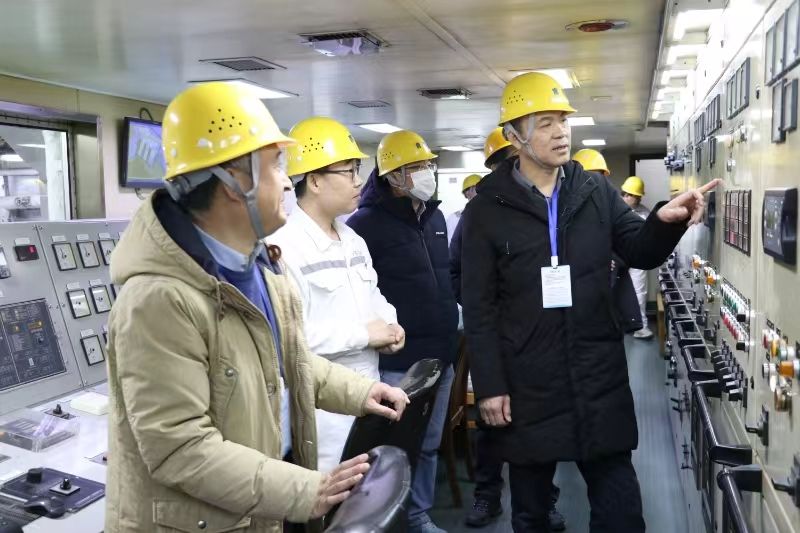 在“育鲲”轮会议室,赵宝刚详细了解船舶整体情况,并向全体老师和船员及其家属送上节日的问候和诚挚的祝福。赵宝刚表示,过去一年,“育鲲”轮安全无事故,在教学实习等方面全面服务学校发展,效果显著,这是全体在船老师和船员共同努力的结果,感谢大家的辛勤付出。赵宝刚强调,船上要始终把生产安全放在首位,预防为主,及时发现和消除安全生产隐患,切实把安全生产抓紧抓好。会上,船长李连博汇报了“育鲲”轮2023年在安全生产、实践教学、辅助科研、服务社会、访问交流等方面开展的工作。会后,赵宝刚一行对船上重点场所进行了现场安全检查。