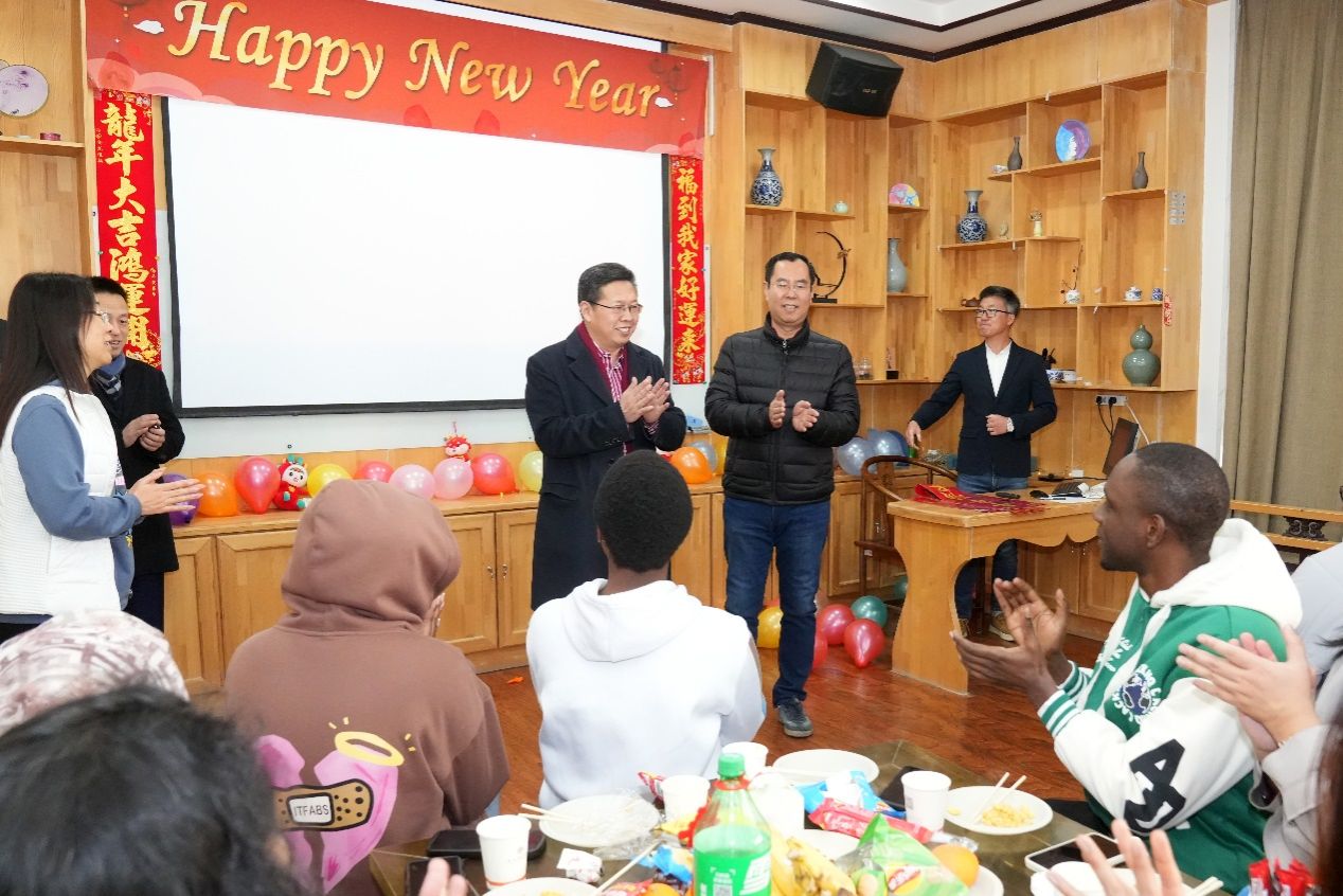 在留学生教育中心,校领导参加了留学生迎新春文化活动,现场慰问了全体在校留学生,希望在校过年的留学生借春节进一步体验中国、读懂中国,感受中华文化的魅力。