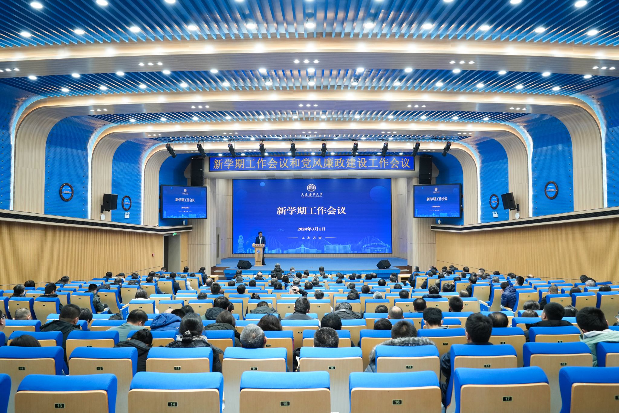3月1日,我校在中远海运报告厅召开新学期工作会议,党委书记许民强、校长单红军在会上作讲话,校领导、中层干部、二三级教授、学科带头人、专业负责人、机关科级干部参加会议。