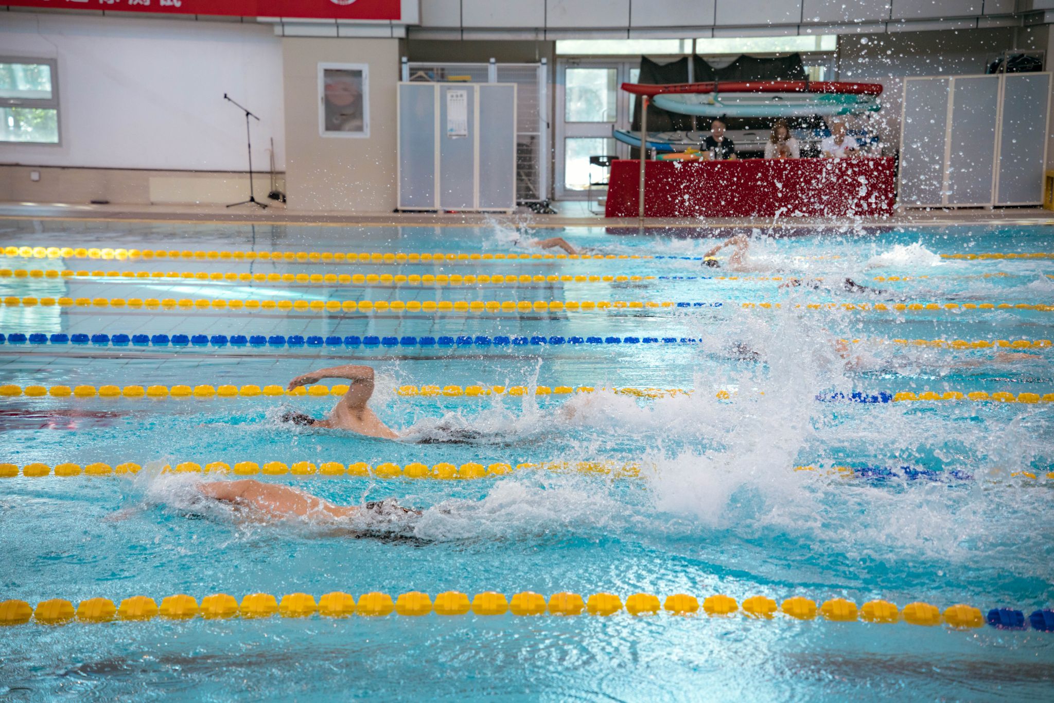 此次运动会分为教工组和学生组。教工组设有50M蛙泳、50M自由泳、男女4×50M蛙泳接力3个竞赛项目;学生组设有男女50M蛙泳、50M自由泳、50M仰泳、50M蝶泳、4×50M蛙泳接力、4×50M自由泳接力等竞赛项目。竞赛中,运动员们顽强拼搏、奋勇争先,以饱满的姿态和进取的精神投入到赛事之中,砥砺自我,力争上游,展现出良好的精神风貌和昂扬的体育精神,真正做到了在体育赛事中享受乐趣、增强体质、健全人格、锤炼意志。在水上表演项目中,校游泳队和校水球队分别进行了救生技能表演和水球表演。运动会还组织了静水桨板体验、皮划艇体验项目,向全校师生普及游泳教育教学成果。