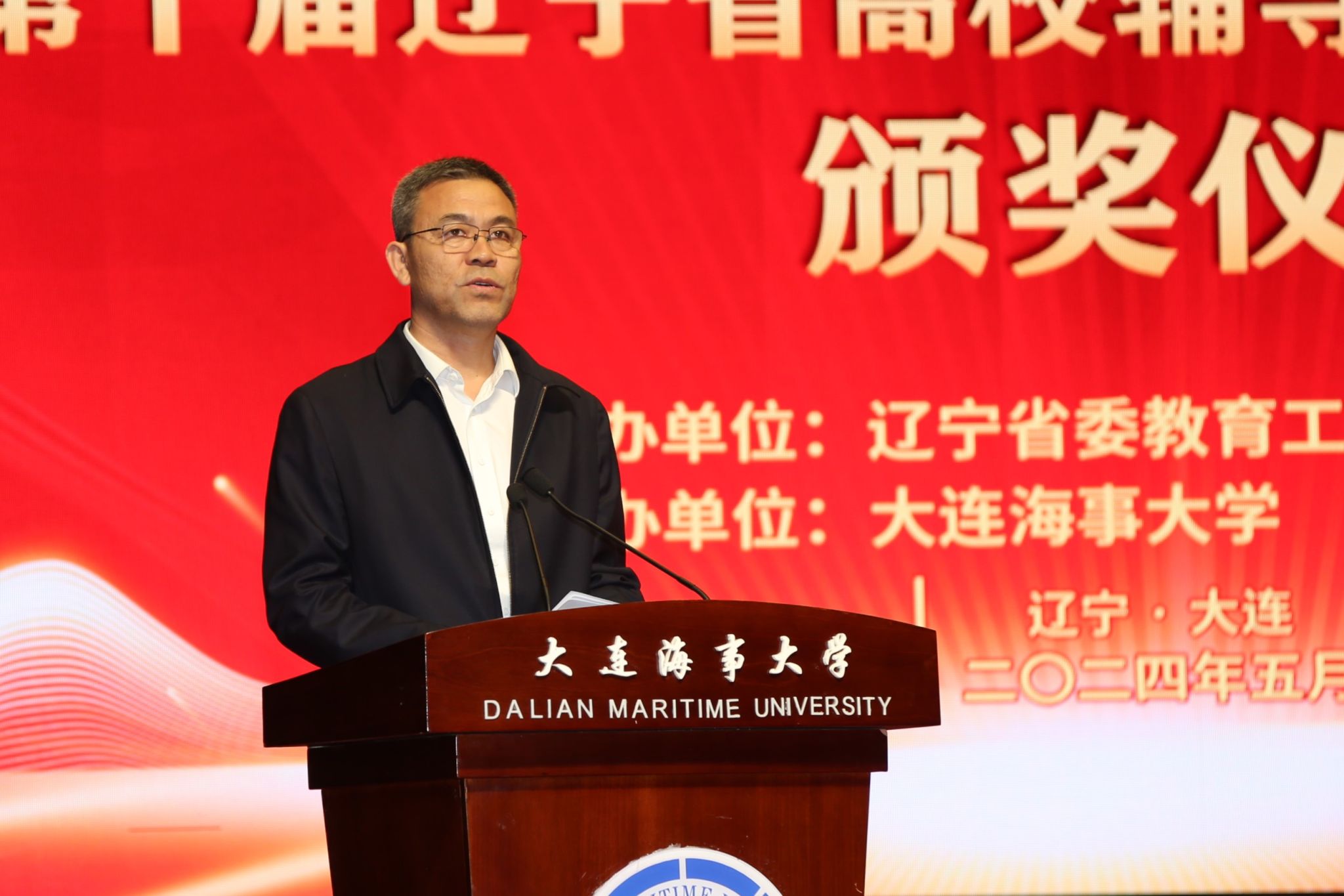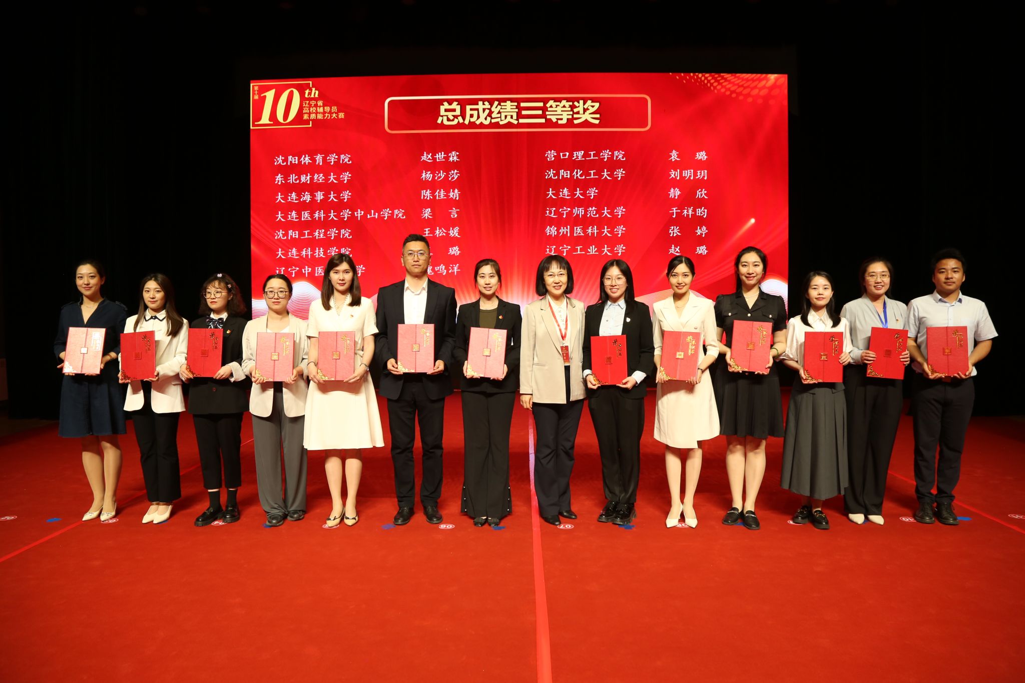 近日,由中共辽宁省委教育工委、辽宁省教育厅主办的第十届辽宁省高校辅导员素质能力大赛在我校成功举办。本次大赛旨在全面贯彻落实立德树人根本任务和“时代新人铸魂工程”部署要求,推动辽宁高校辅导员队伍素质全面提升。辽宁省教育厅二级巡视员陈宝祥、我校副校长赵宝刚、中共辽宁省委教育工委宣传部部长、辽宁省教育厅思想政治工作处处长胡承波出席颁奖仪式,来自全省高校学工部负责同志和辅导员代表共200余人观摩比赛。
