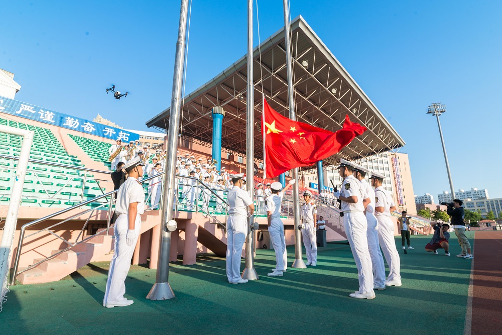 9月10日,大连海事大学隆重举行新学期第一次升国旗仪式。清晨的西山体育场,旭日初升,朝气蓬勃。经历了假期的积淀,海大学子精神抖擞,以高昂的士气启航新学期。党委副书记许民强,学校相关职能部门和各学院学生工作负责人、各中队学生指导员及全体在校本科学生参加了升国旗仪式。