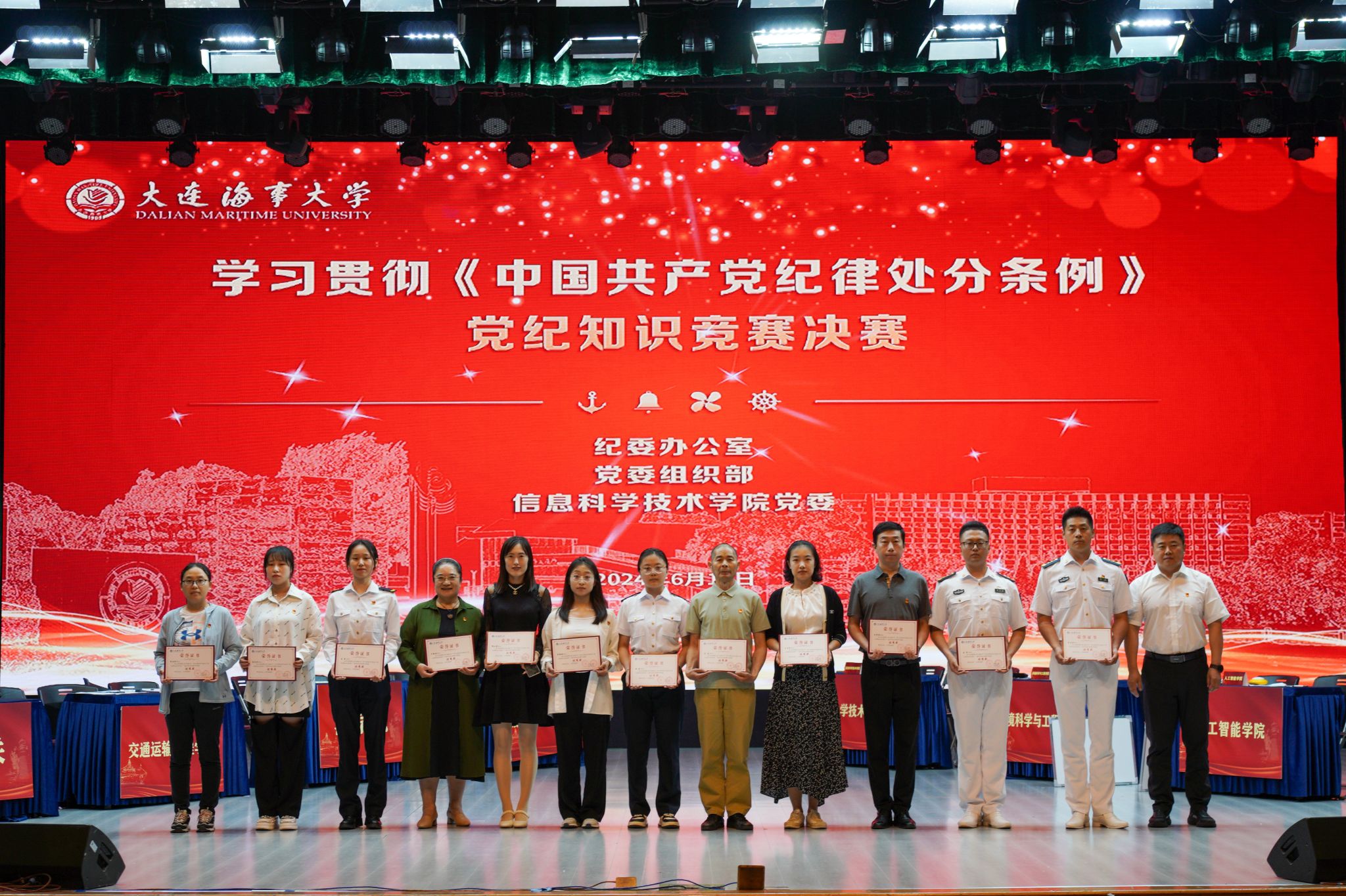为深入学习贯彻习近平总书记关于党纪学习教育的重要讲话和重要指示精神,构建风清气正的良好政治生态,引导广大党员干部和师生党员学纪、知纪、明纪、守纪,6月12日,我校在东山礼堂举办2024年学习贯彻《中国共产党纪律处分条例》党纪知识竞赛决赛。比赛由学校纪委办公室、党委组织部主办,信息科学技术学院承办。校纪委书记罗钟山出席活动,学校中层干部、各二级党组织师生党员代表到场观看比赛。