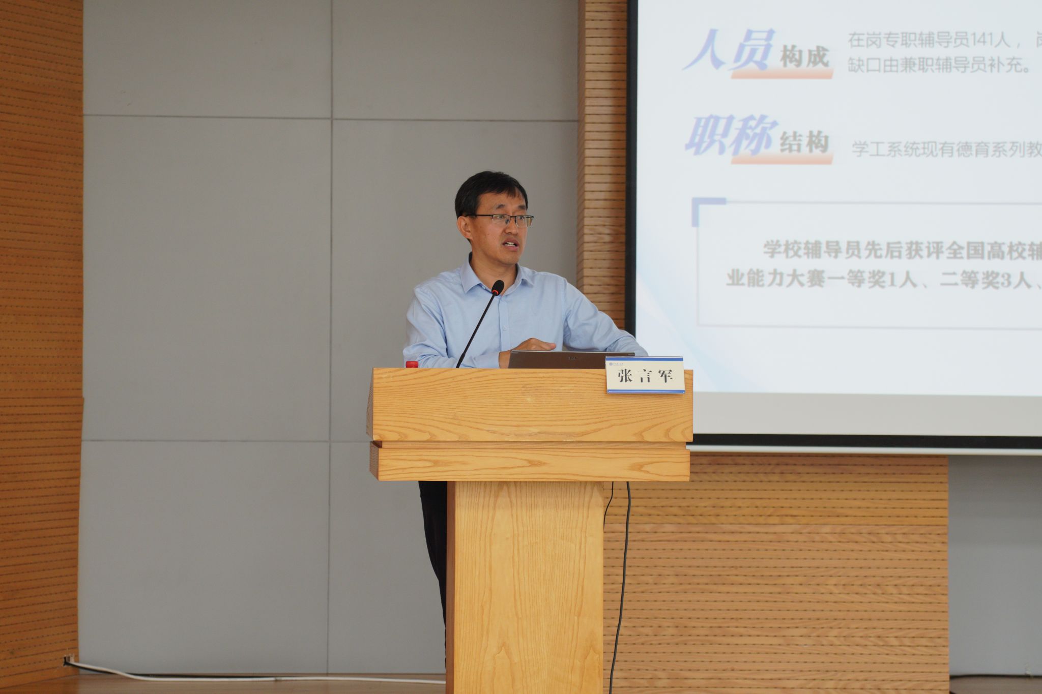 大连理工大学党委副书记张言军以《基于“全面发展、分类卓越、多元成才”理念的学生思想政治教育与素质提升工作体系》为主题介绍学生工作情况。他从基本情况、工作体系建设情况、主要工作经验三个方面进行分享。