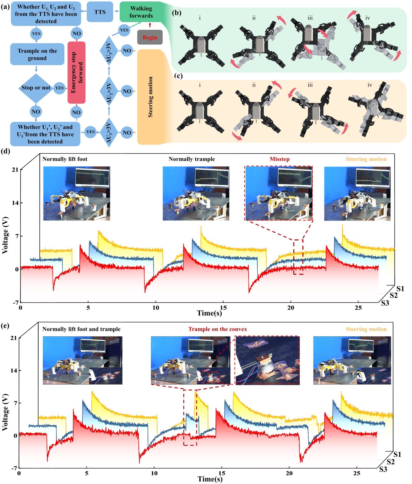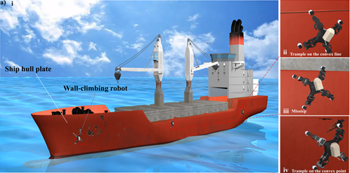 近日,轮机工程学院徐敏义团队在《Nano Research》上发表最新研究论文"Highly adaptive triboelectric tactile sensor on the foot of autonomous wall-climbing robots for detecting the adhesion state and avoiding the hazard"。这项工作提出了一种高适应性摩擦电触觉传感器,用于检测腿足式磁吸附爬墙机器人的磁吸附状态,提高机器人自主爬行的避障能力和安全性。