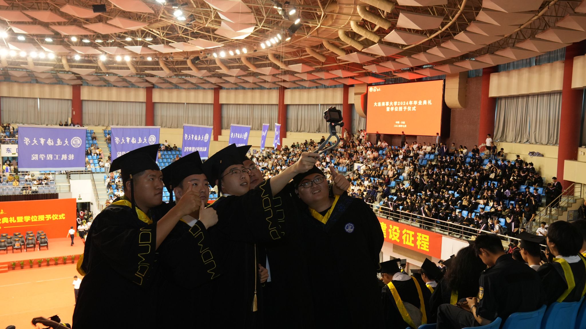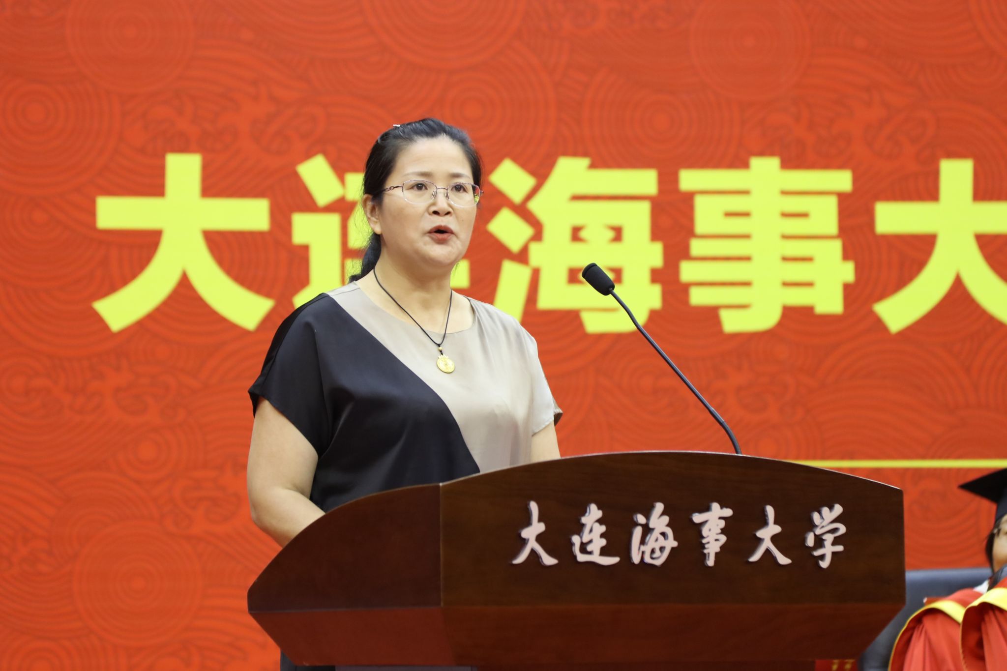 7月2日,大连海事大学“海大•印迹”——2024年毕业典礼暨学位授予仪式在体育馆隆重举行。校领导许民强、单红军、罗钟山、赵宝刚、曾庆成,学校学位评定委员会成员代表,我校2014届校友、国家深海基地管理中心“蛟龙”号载人潜水器首批女潜航员赵晟娅,学校有关单位(部门)负责人,教师代表、学生工作干部,2024届毕业生和毕业生家长出席典礼。
