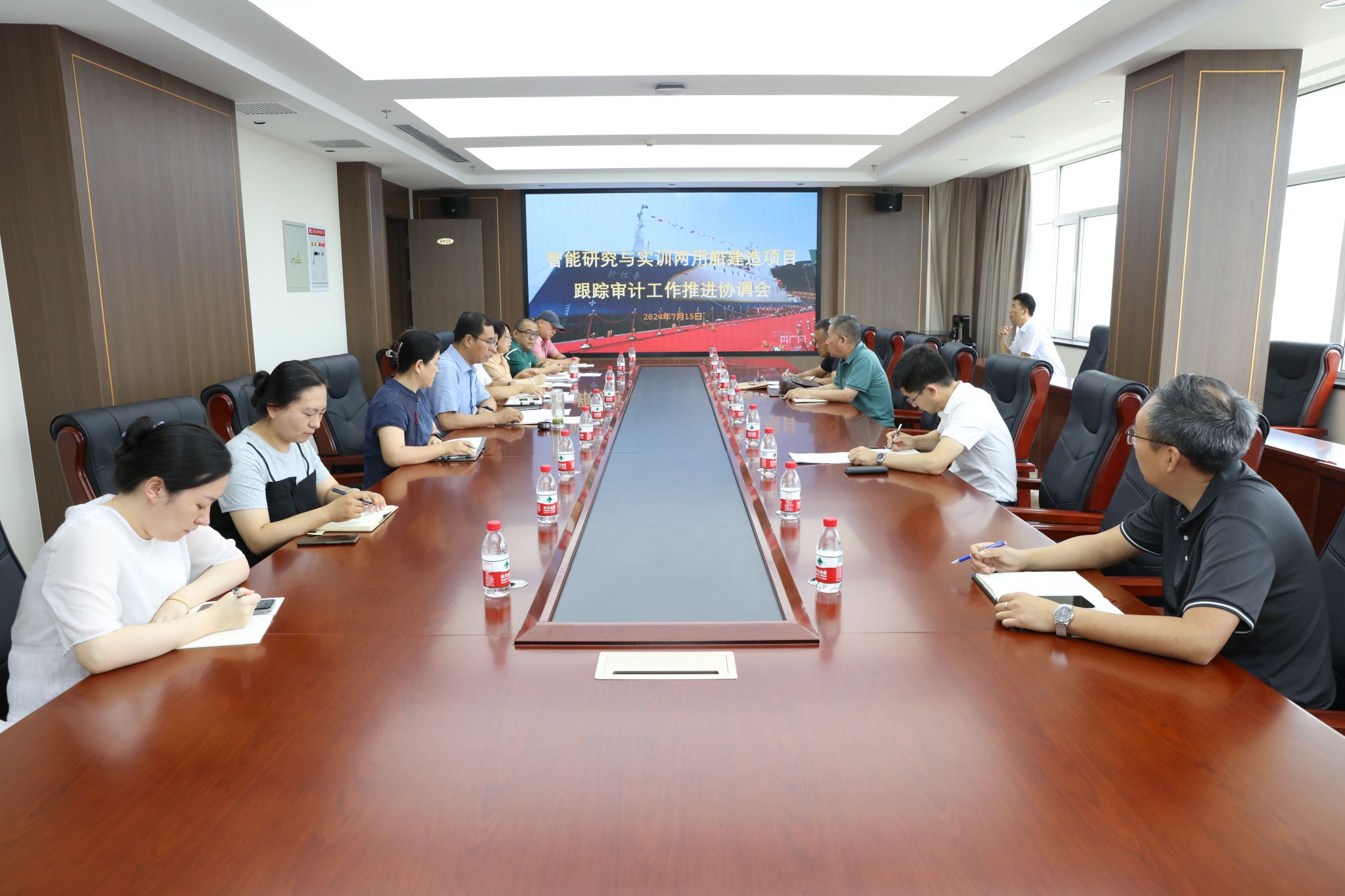 会上,审计处汇报了“新红专”轮建造项目跟踪审计相关情况,社会审计机构汇报了近期审计安排及需要协调配合的事项,相关单位(部门)就项目管理、材料补充、经费支出、后续配合审计工作的细节进行了充分交流。