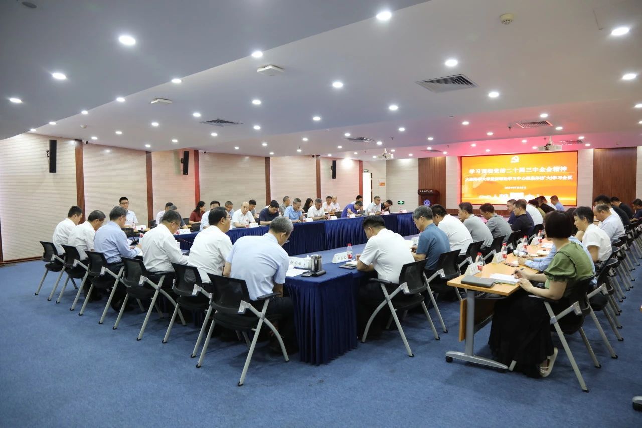7月22日,学校党委理论学习中心组在综合楼凌水国际会议厅举行会议,专题学习党的二十届三中全会精神,部署学校贯彻落实工作。校党委书记许民强主持学习会议。学校领导班子成员依次交流发言。中心组成员、各单位(部门)党政正职参加会议。