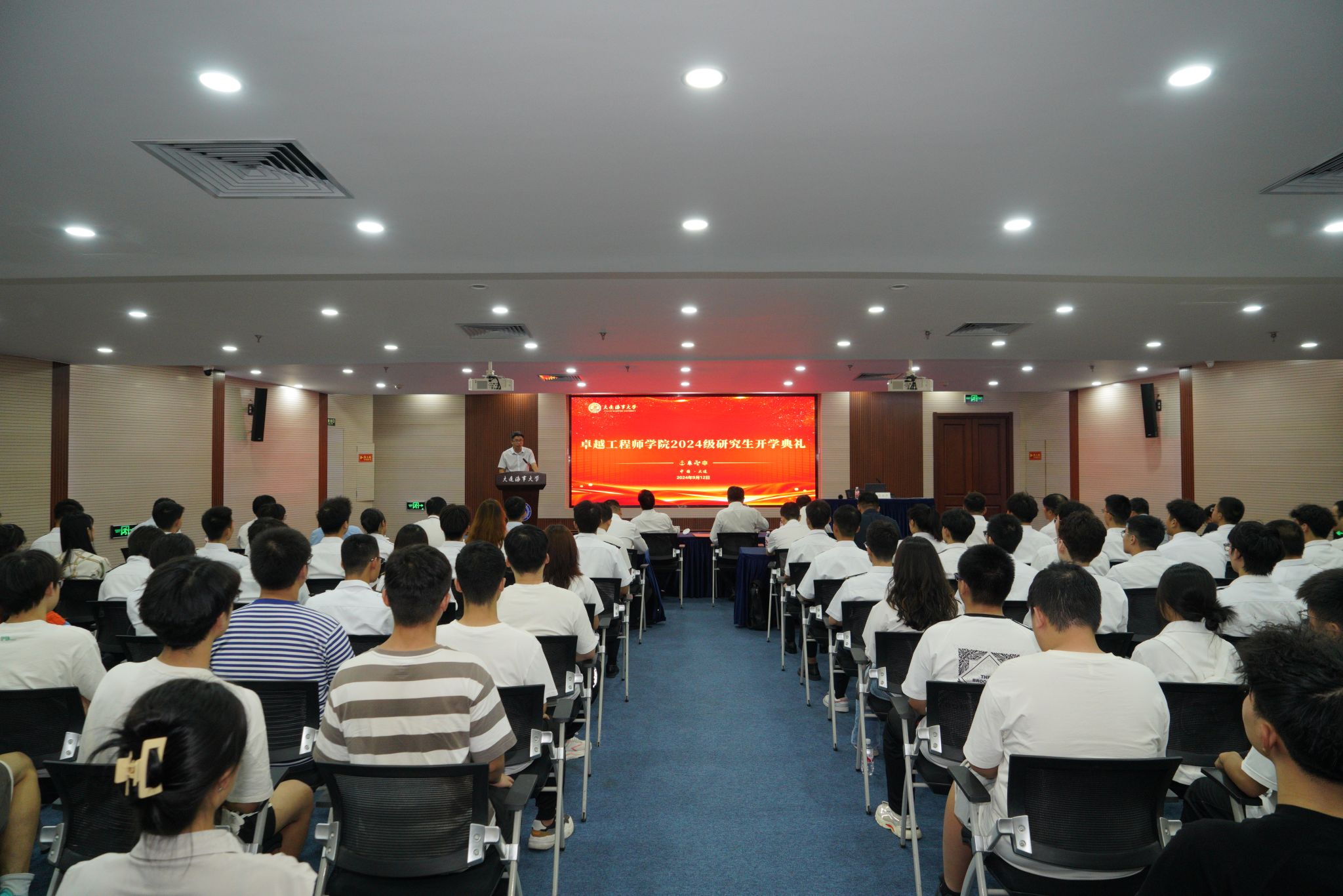 李易庭代表2024级新生发言。他表示,作为学校卓越工程师学院的首批学生、国家工程硕博士培养改革专项试点单位的一员,他呼吁同学们把握机遇、勤奋学习,提高自身的创新与实践能力,努力成长为满足国家需求的卓越工程师。