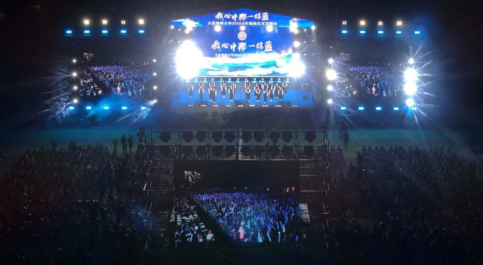 9月14日晚,大连海事大学“我心中那一抹蓝”2024年迎新生文艺晚会在西山体育场举行。全体2024级新生,校领导许民强、单红军、罗钟山、赵宝刚、曾庆成,教师代表,综合管理机构、教学科研单位、支持保障机构、学校企业负责人,各学院主管学生工作领导,新生指导员和军训教官观看晚会。